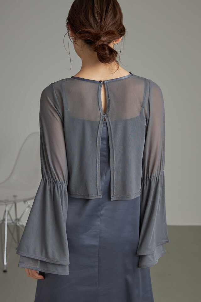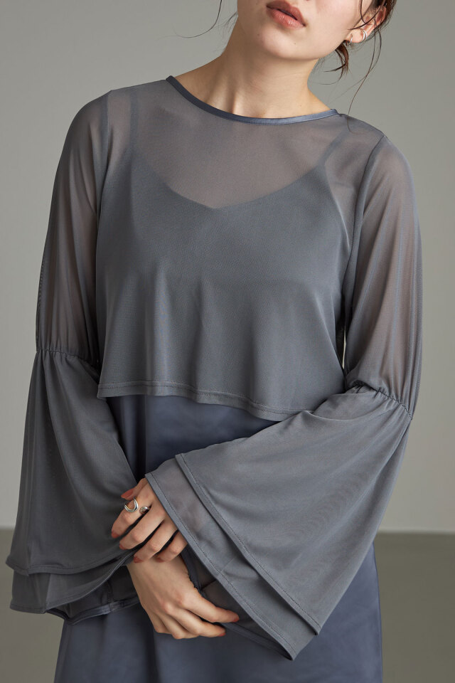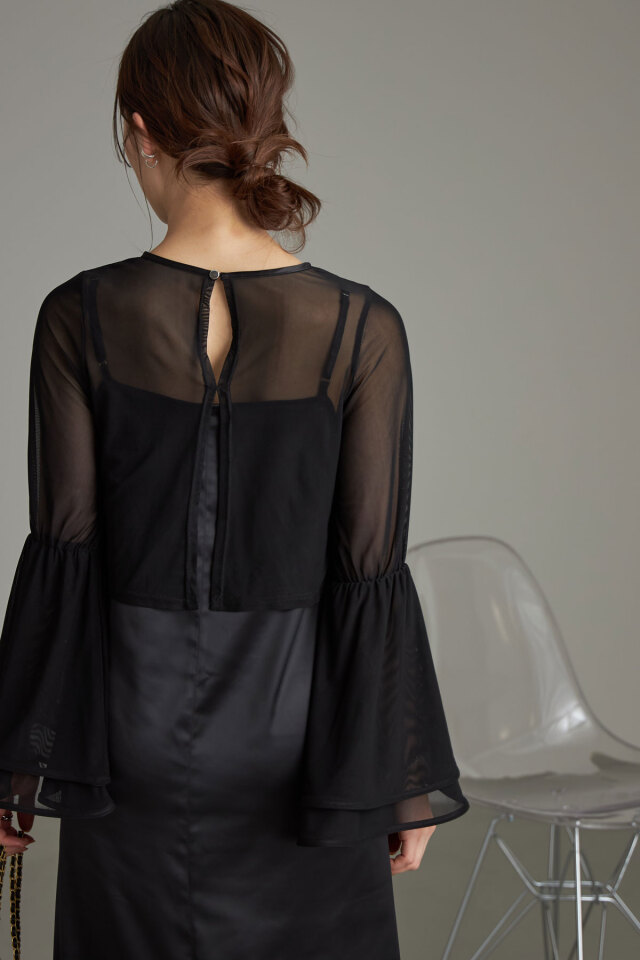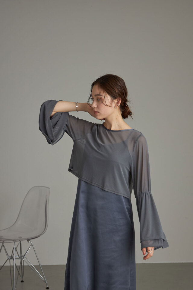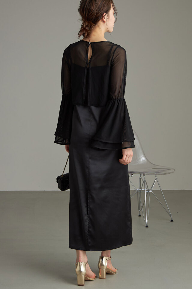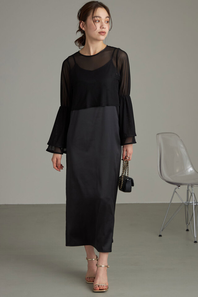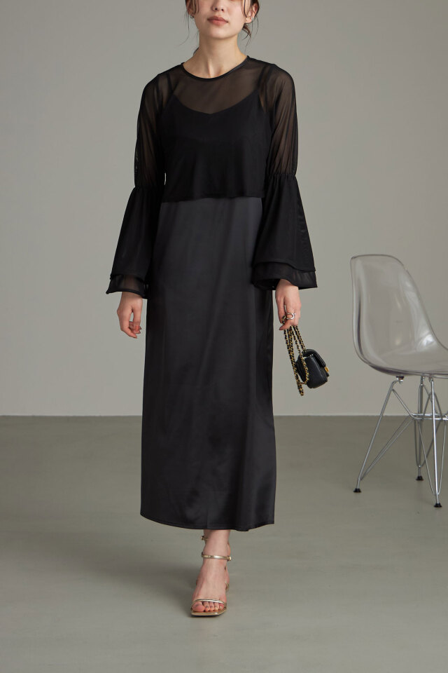 ワンピース/ポリエステル100% (中国製・伸縮性なし・透け感トップスのみあり・裏地あり) |