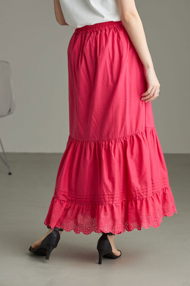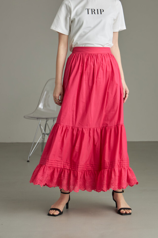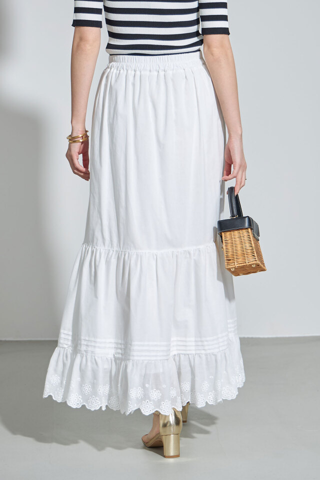 | 商品説明 | : | 夏のシーズンムード漂う、コットンレースギャザーフレアスカート 夏シーズンにぴったりなコットンレースを使用したフレアスカート。 定番のホワイトから、お出かけやリゾートに着たい目を惹くカラーもご用意! さらっとTシャツに合わせるだけでコーデが完成する、着映えスカートです! 晩夏~初秋にはスエットなどカジュアルなアイテムと合わせても◎ |