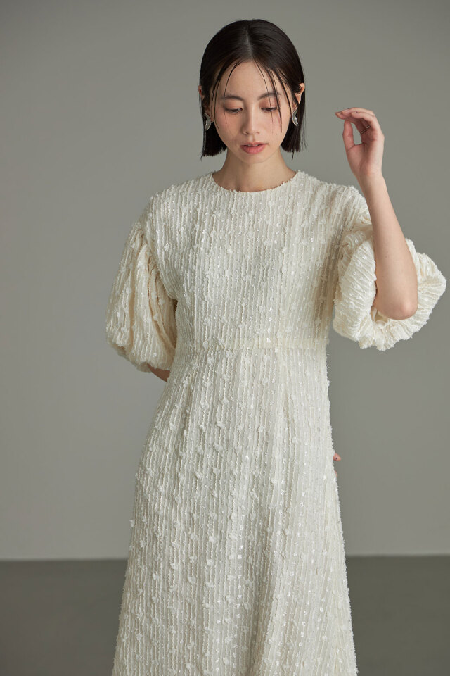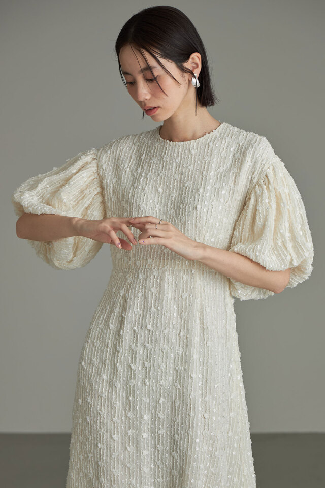 | 商品説明 | : | 表面感のある素材で高見えが叶う、フラッフィーミックスバルーンワンピース ラメやふんわりした糸をミックスしたフラッフィー素材を使用し、価値観のあるバルーン袖ワンピース。 華やかさがあるからセミオケ~お出かけまで、様々なシーンに使えて大人女性が1枚は持っておきたいアイテム! 着心地もふんわり軽やかで、夏にも爽やかに着て頂けます◎ |