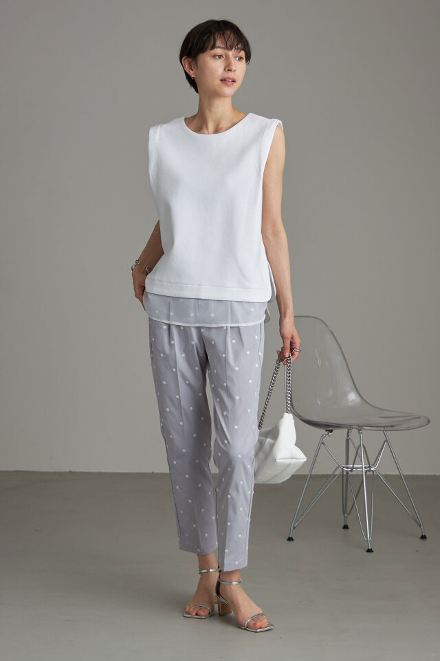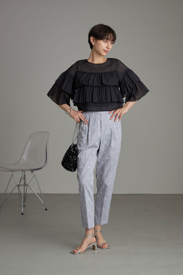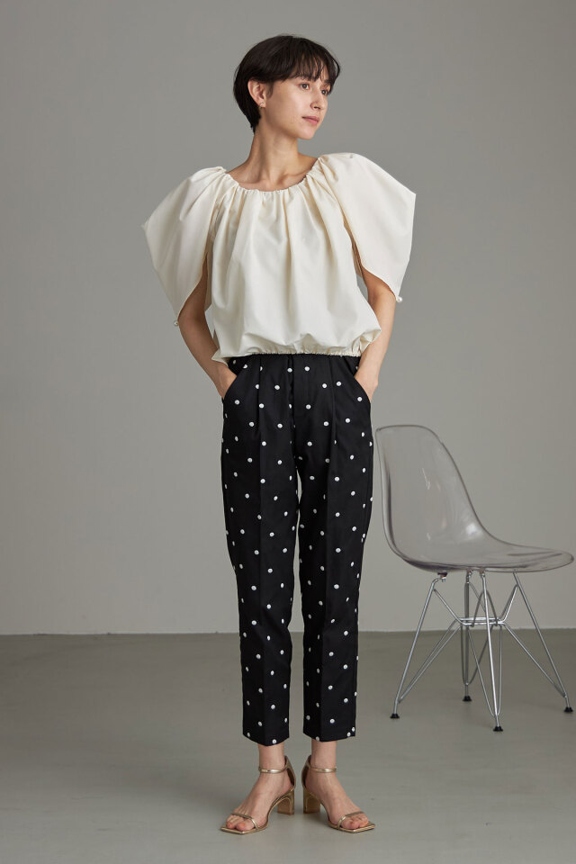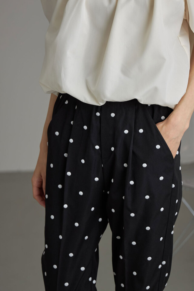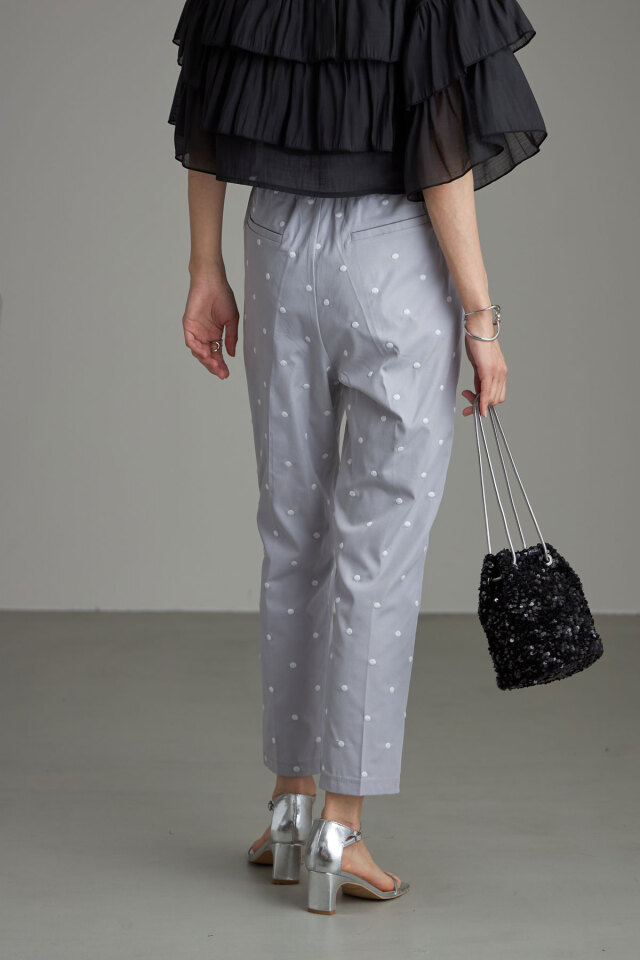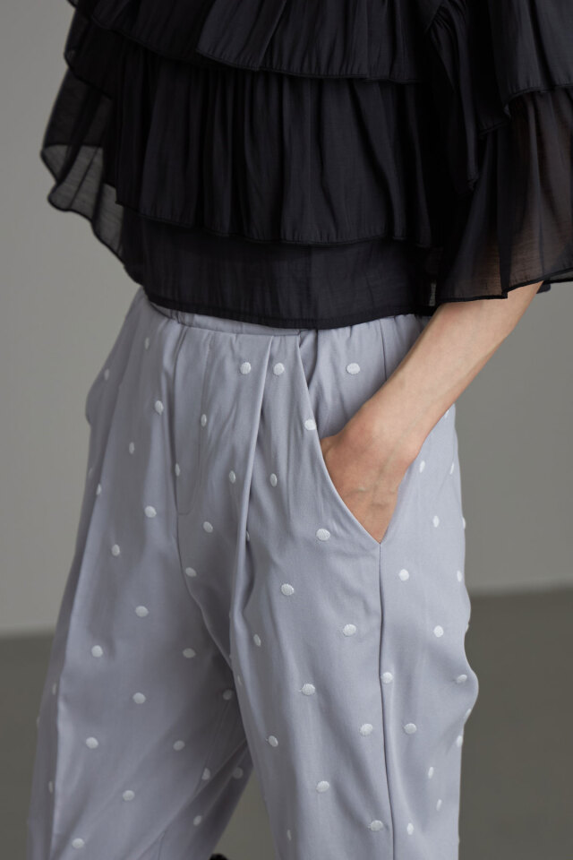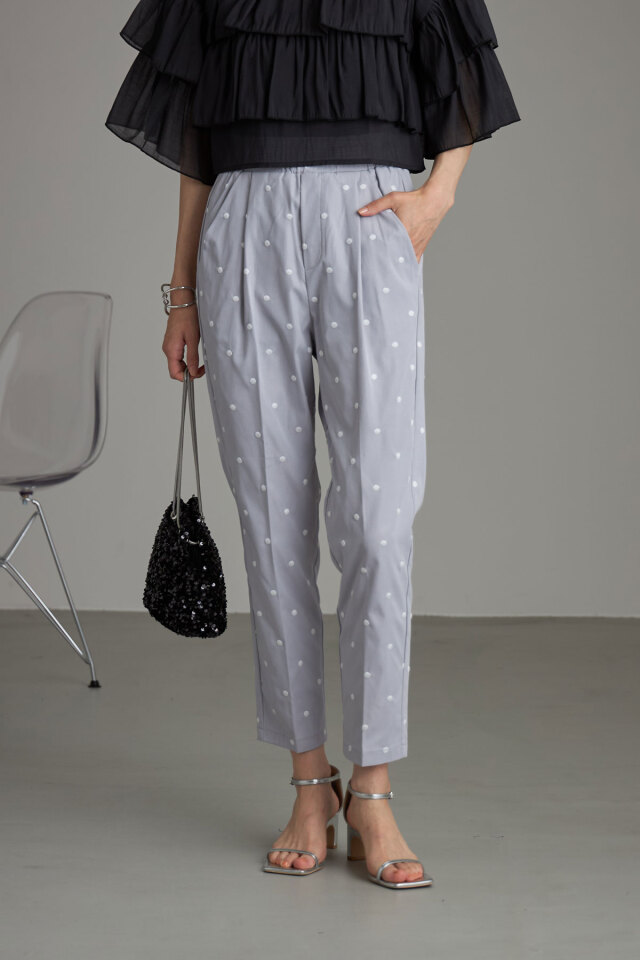 | 商品説明 | : | &.NOSTALGIAの人気シリーズドットパンツを、刺繍で高見えにアップデートしたドット刺繍テーパードパンツ! すっきり見せてくれる定番のテーパードシルエットを採用し、どんなコーデにも合わせやすいパンツに仕上げました。 ドット柄を刺繍でデザインすることで、プリントよりも高見え!さらに程よいニュアンスも実現! シーズンレスで使いやすいブラックベースと、爽やかなブルーグレーの色展開で 好きなテイストに合わせてお選びいただける2色なのも嬉しい◎ |