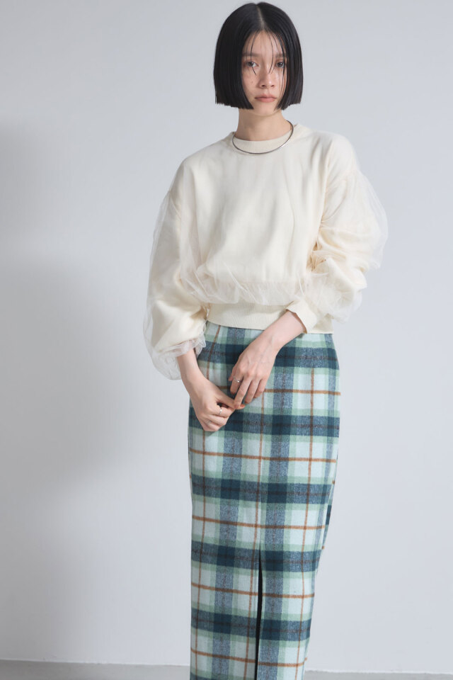 | 商品説明 | ≪ Attention:販売日、在庫状況はWEBと店舗と異なります。予めご了承くださいませ。≫ トレンドのチュール重ねデザインを大人使用に仕上げた、ニットプルオーバー 今年らしいチュールとニットがドッキングされたデザインで、 合わせるニットをこれに変えるだけで、デイリーコーデをアップデートしてくれる1枚です! 裾にメリハリのあるデザインだから、スカートでもパンツでも相性◎ |