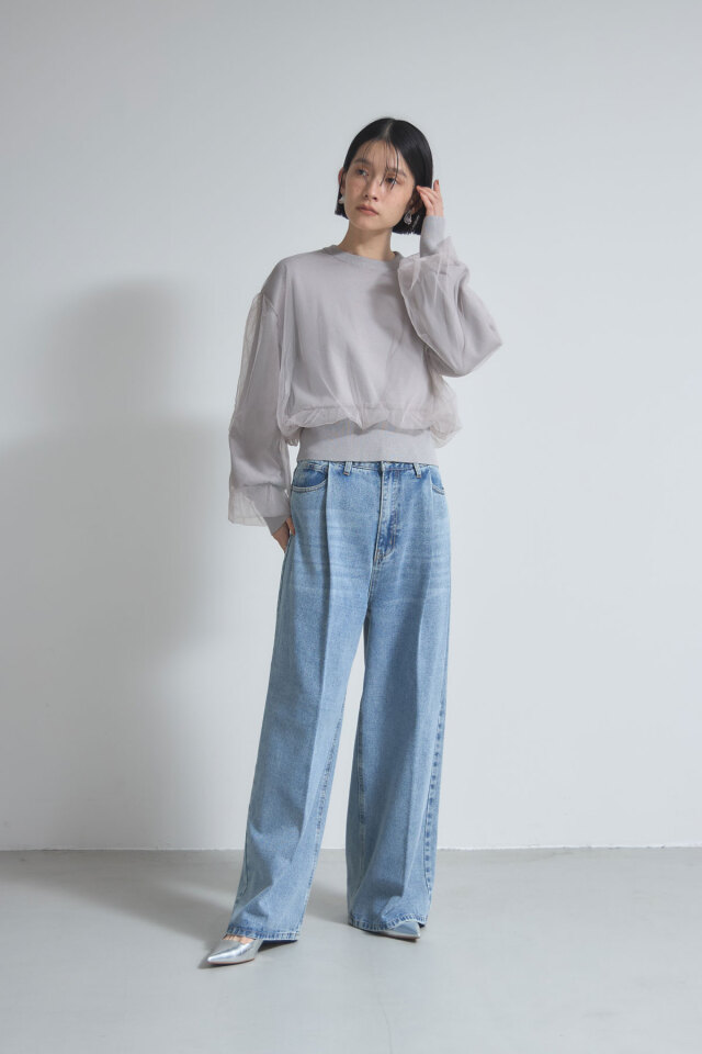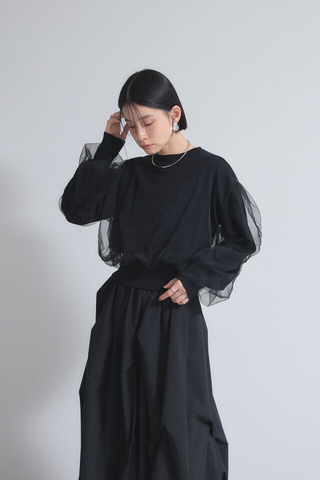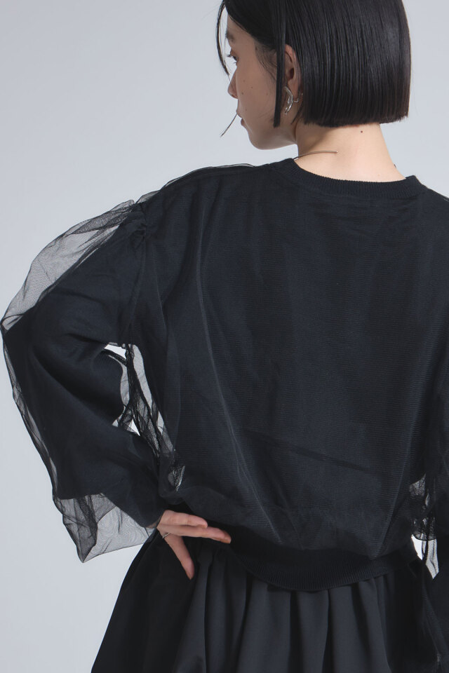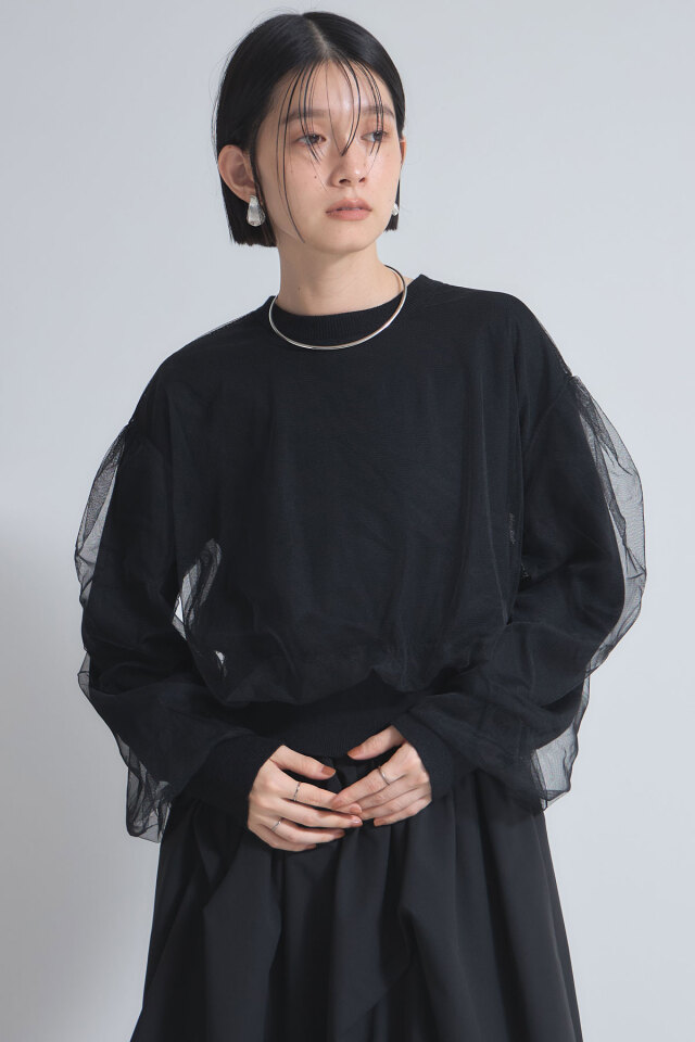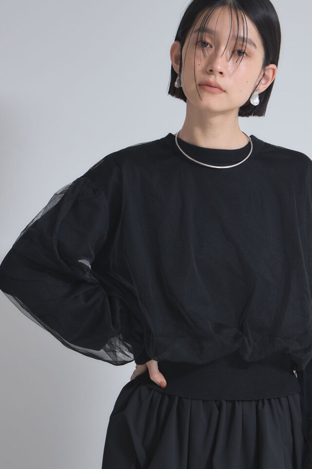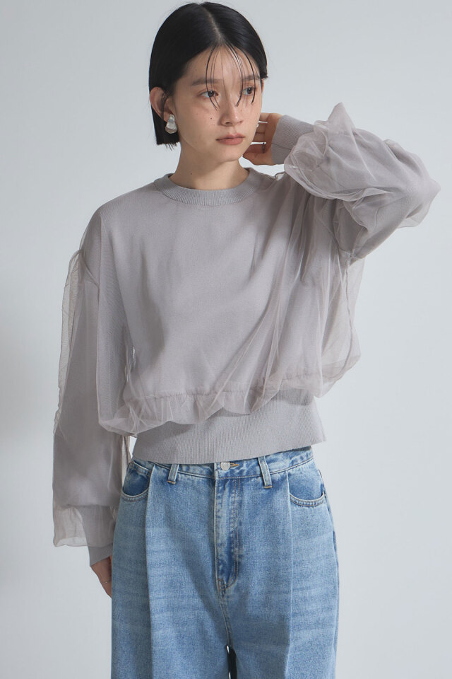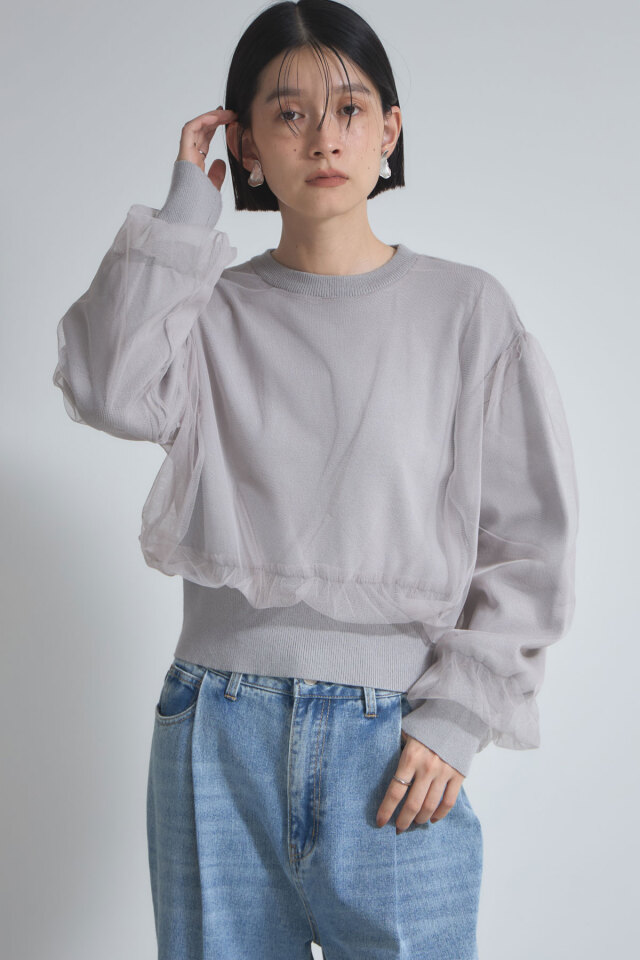 | 商品説明 | : | トレンドのチュール重ねデザインを大人使用に仕上げた、ニットプルオーバー 今年らしいチュールとニットがドッキングされたデザインで、 合わせるニットをこれに変えるだけで、デイリーコーデをアップデートしてくれる1枚です! 裾にメリハリのあるデザインだから、スカートでもパンツでも相性◎ |
