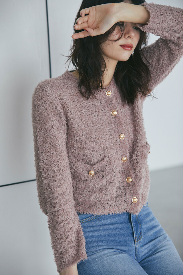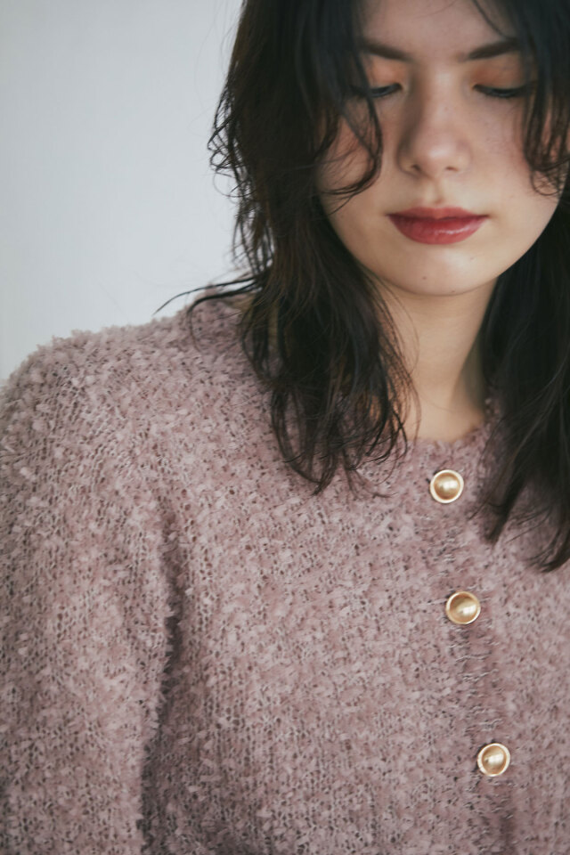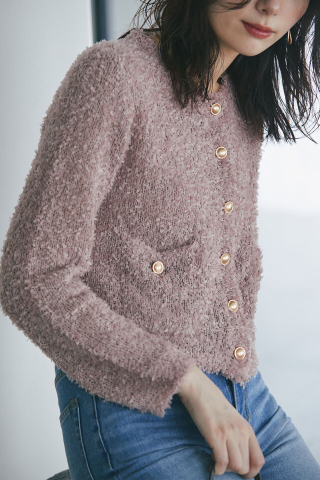 | 商品説明 | : | トレンドのテープシャギー素材でシーズン先取りコーデにおすすめ!テープシャギーニットカーディガン 程よく透け感があり初秋からシーズンコーデを楽しめる素材のカーディガン。 ほっこりした素材感のなかに、きらっと光るボタンがワンポイントになってくれるから、 1枚でもしっかりメリハリのあるアイテムです◎ |