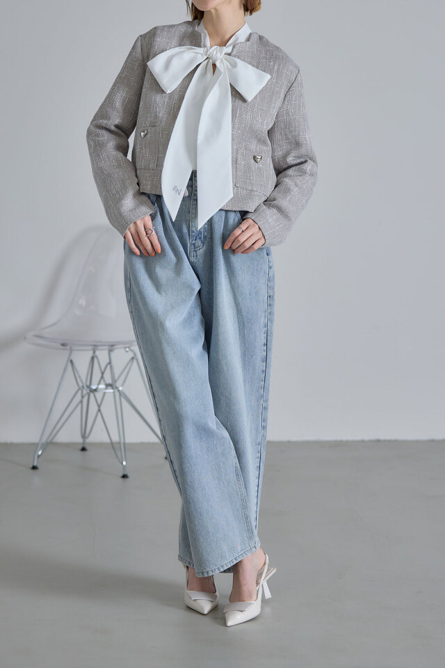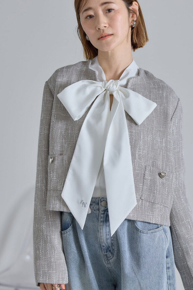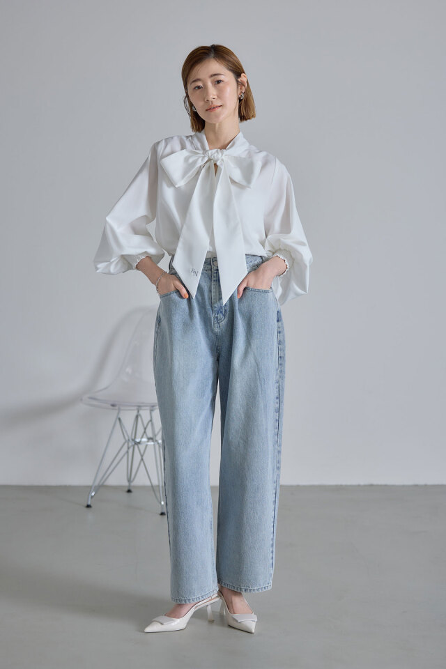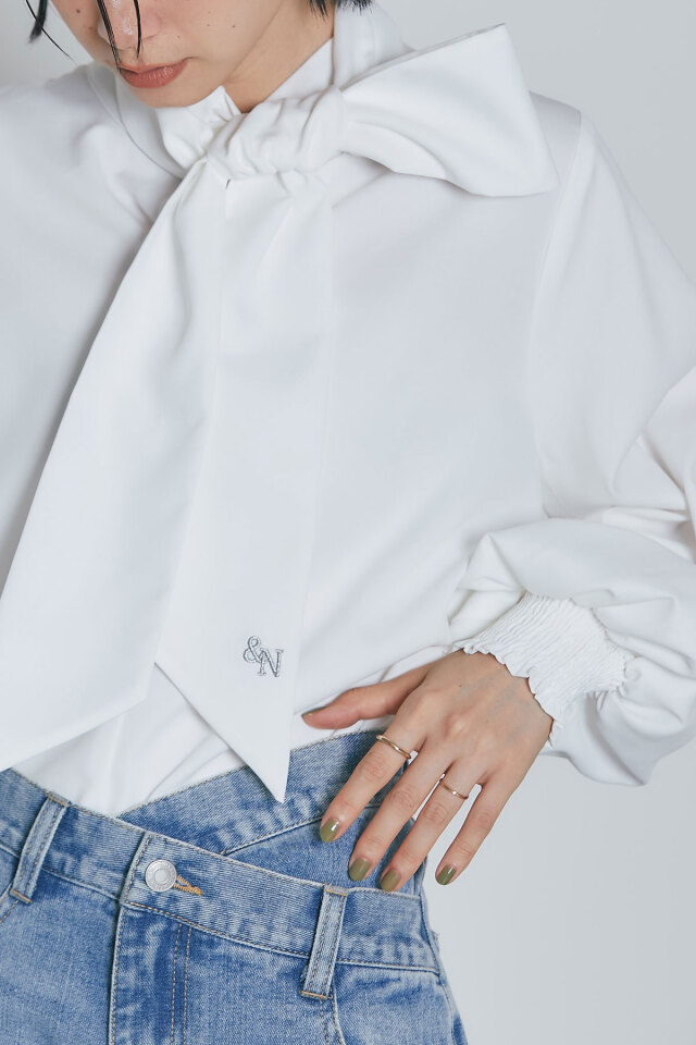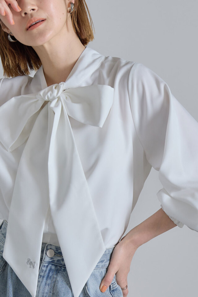 | 商品説明 | : | 前後2WAYラメエンブロイダリーボウタイブラウス オリジナル刺繍がワンポイントのボウタイブラウス! 1枚でトップスとしても、ニットやカーデとレイヤードしても着こなせるから、 様々なシーズンに活躍する、1枚持っておきたいブラウスです◎ 刺繍がラメ糸で施されているから、程よくきらっとしてアクセいらずなのも嬉しい! |