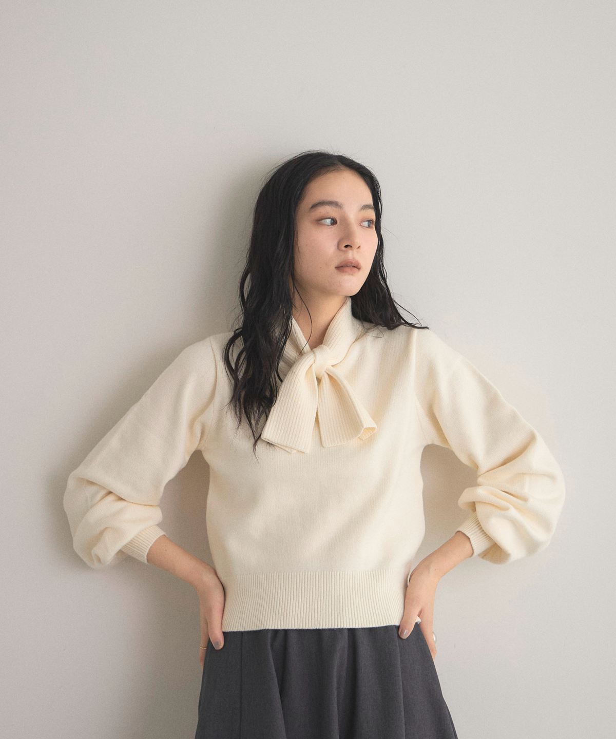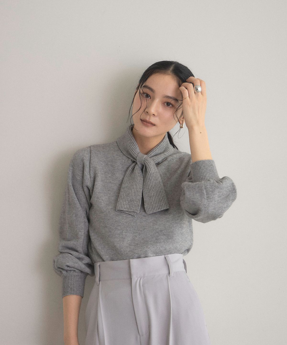 | 商品説明 | : | 周りと差がつく襟デザインがマニッシュな雰囲気に♪ ▼POINT ・ハイネックデザインに結んだリボンを施した着映え間違いなしトップス ・スカートスタイルにもパンツスタイルにも合わせやすい着回し力抜群 ・長めのスリーブデザインでお袖を捲った時のぽわんシルエットも可愛い ・ジャストなサイズ感できちんと感もあるのでオンオフ問わずに着回せます☆ |