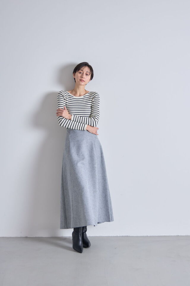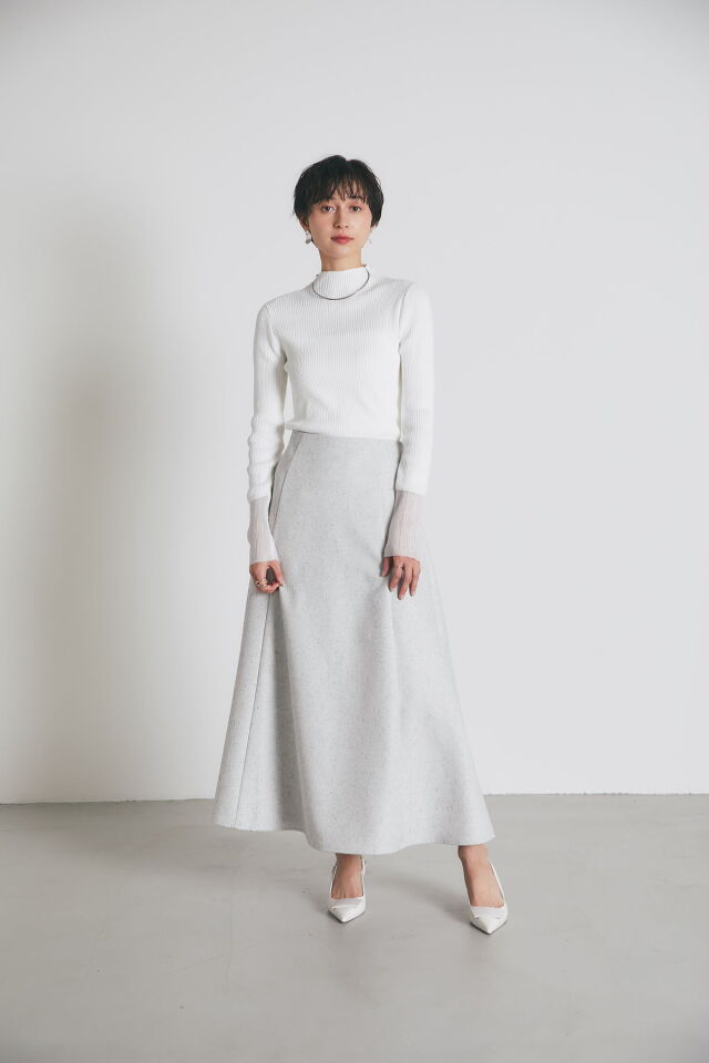 | 商品説明 | : | シーズンレス、シーンレスに着こなせる、ツイードフレアスカート シーズンレスに着こなせる軽やかなツイード素材のフレアスカート。 きれいめに合わせてオフィスシーンにも、ニットやTシャツを合わせてカジュアルにも◎ 程よいフレアシルエットだから、トップスをインでもアウトでも合わせやすいのも嬉しい! |