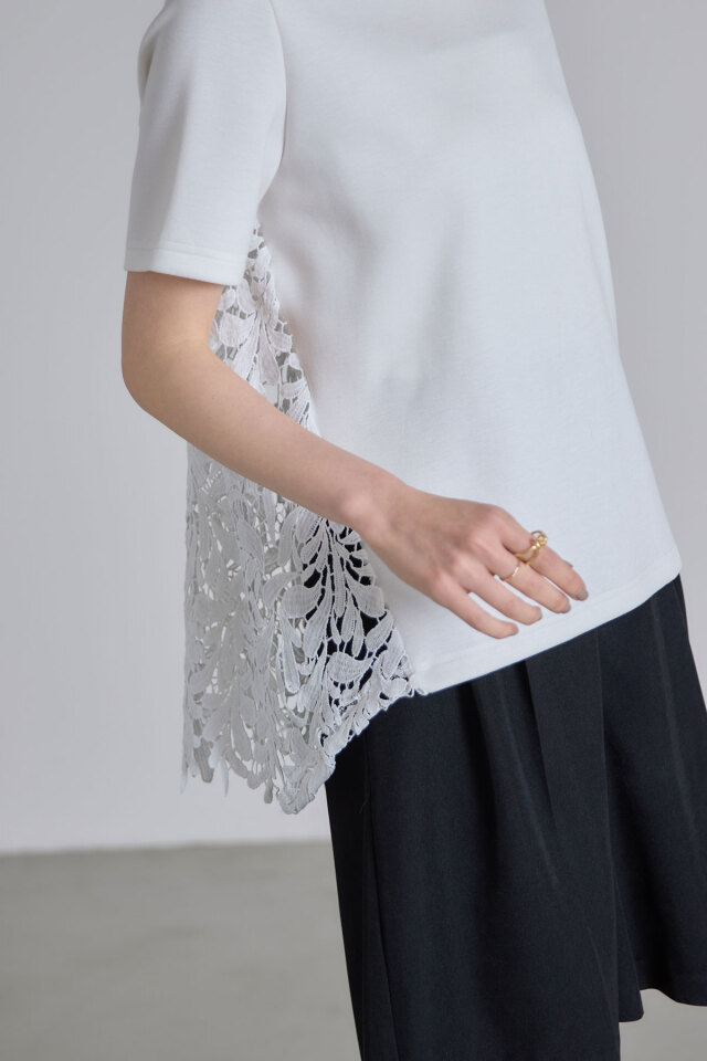 | 商品説明 | ≪ Attention:販売日、在庫状況はWEBと店舗と異なります。予めご了承くださいませ。≫ バックレースがTシャツコーデに華やかさをプラスしてくれる、ハーフスリーブTシャツ これからの時期活躍するTシャツアイテムに、バックレースデザインを施し着映えを叶えた1枚! 甘すぎずカジュアルにも着回せるレースの柄にすることで、大人カジュアルに着こなせるTシャツに仕上げました。 バックスタイルの透け感もポイント!気になる方は同色インナーを入れても良し、 抜け感を出したい方は肌の見えるインナーを合わせて、夏の透けコーデを楽しんでも良しのアレンジが効くアイテムです! |
