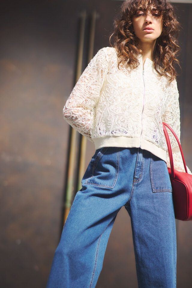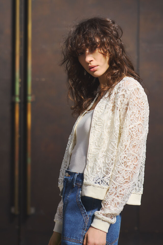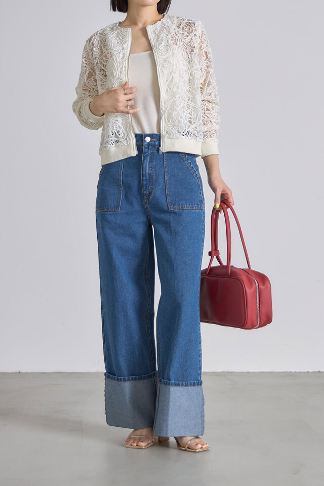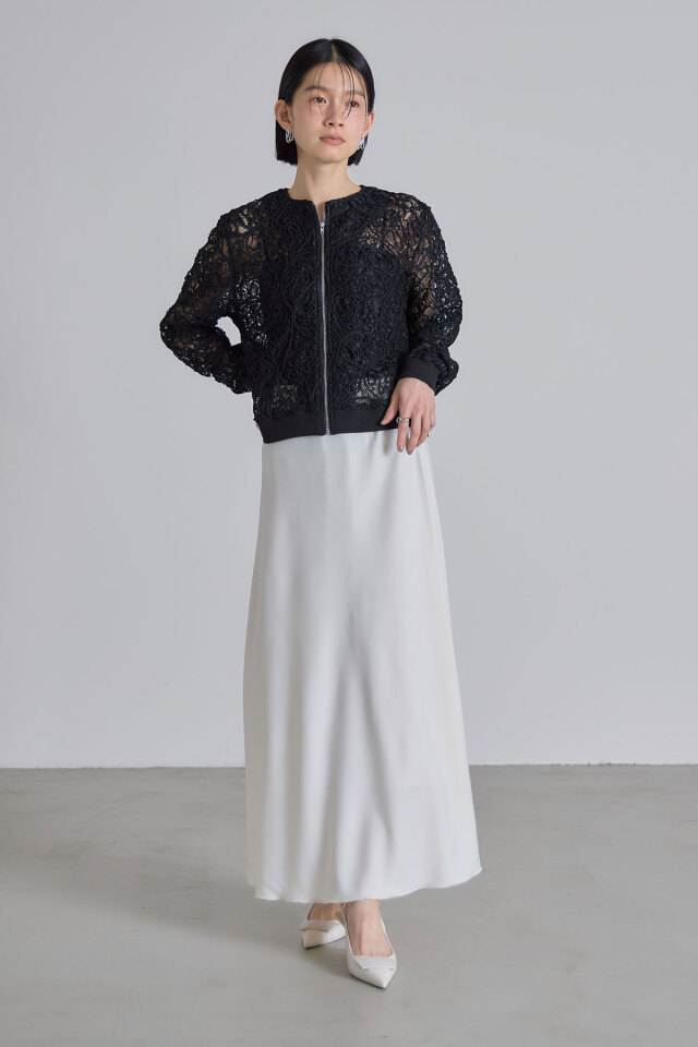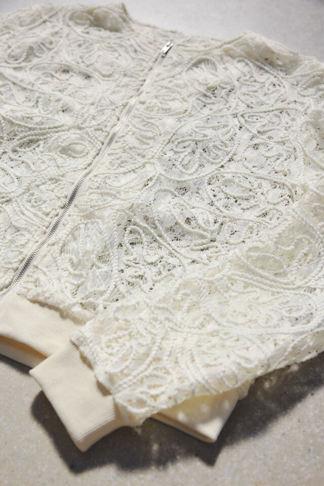 | 商品説明 | ≪ Attention:販売日、在庫状況はWEBと店舗と異なります。予めご了承くださいませ。≫ カジュアルなシルエットにロープレースの上品さをプラスし、女性らしく抜け感のあるブルゾン! 軽やかな素材感でさらっと羽織れるのが◎気になる部分を程よくカバーしながら、華奢見えを叶える1枚です! デニムやワイドパンツと合わせたカジュアルスタイルはもちろん、スカートやワンピースに羽織って甘辛ミックスコーデも◎ |