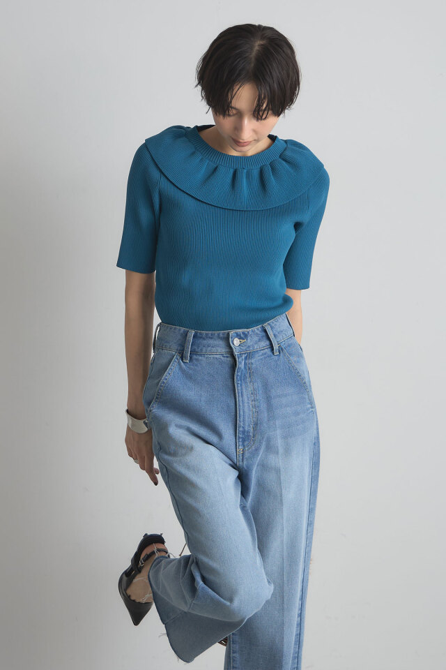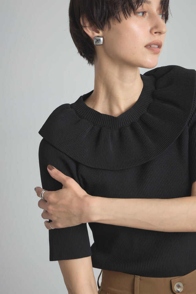 | 商品説明 | : | 人気のフリルネックニットから半袖バージョンが登場! 1枚で着映えしてくれるフリルネックニットが、待望の半袖バージョンになって再登場! アクセいらずで華やかなフリルカラーが魅力ながら、袖と身頃はすっきりシンプルでメリハリのある1枚。 フリルデザインが顔まわりを華やかに見せてくれるから、座ることの多いオフィスやランチ会にもおすすめ◎ |