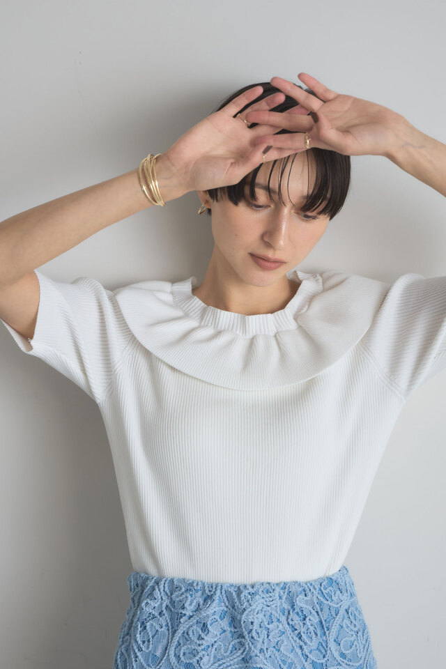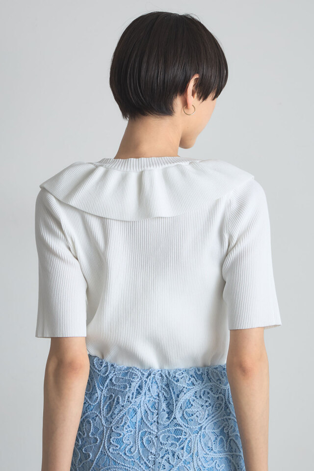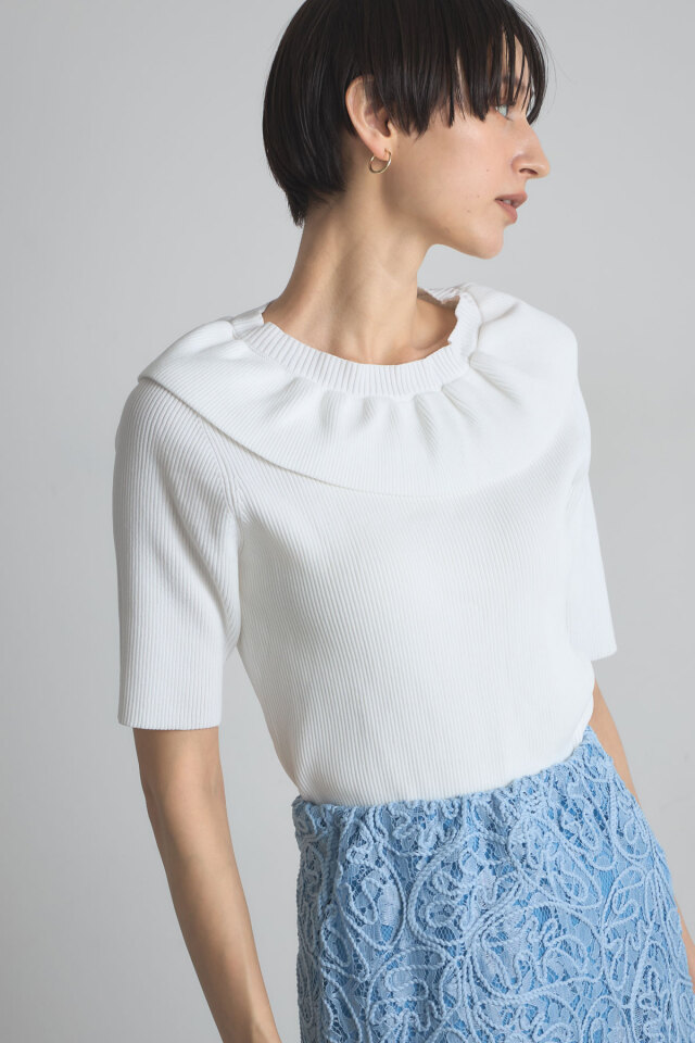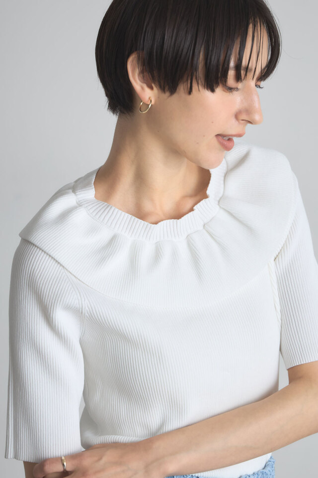 | 商品説明 | ≪ Attention:販売日、在庫状況はWEBと店舗と異なります。予めご了承くださいませ。≫ 人気のフリルネックニットから半袖バージョンが登場! 1枚で着映えしてくれるフリルネックニットが、待望の半袖バージョンになって再登場! アクセいらずで華やかなフリルカラーが魅力ながら、袖と身頃はすっきりシンプルでメリハリのある1枚。 フリルデザインが顔まわりを華やかに見せてくれるから、座ることの多いオフィスやランチ会にもおすすめ◎ |