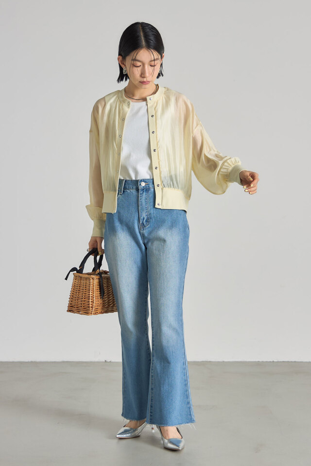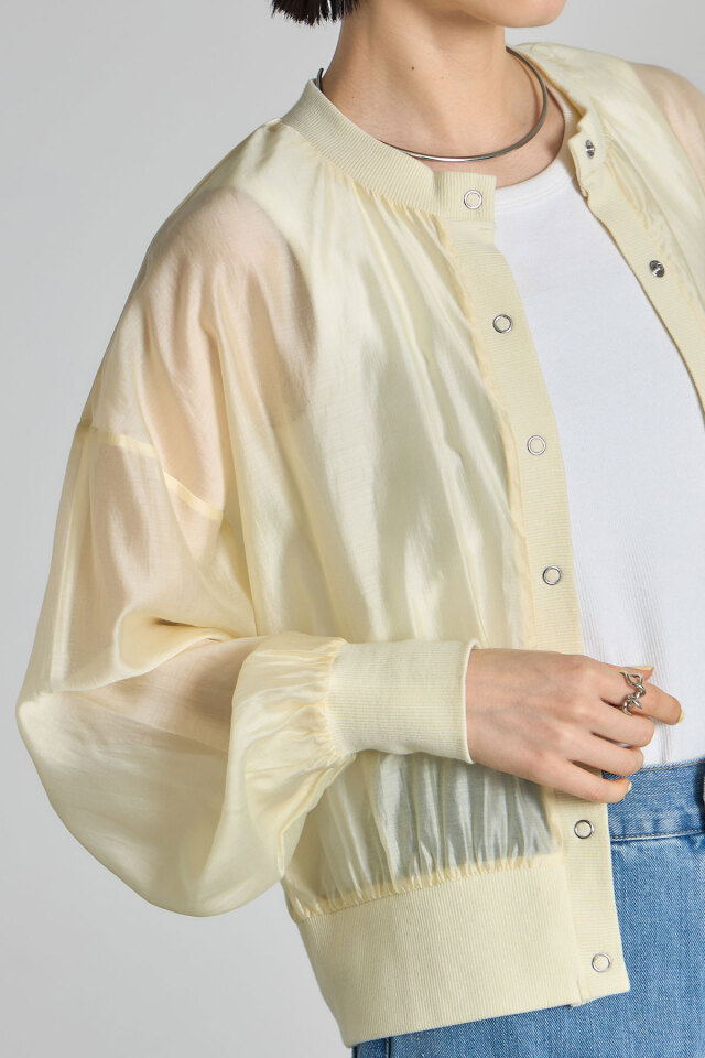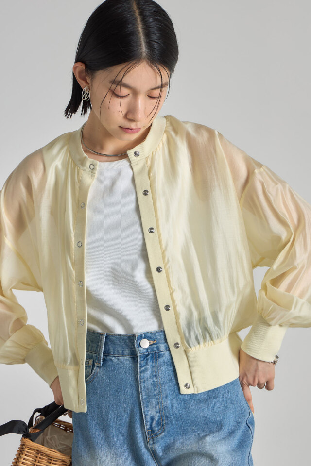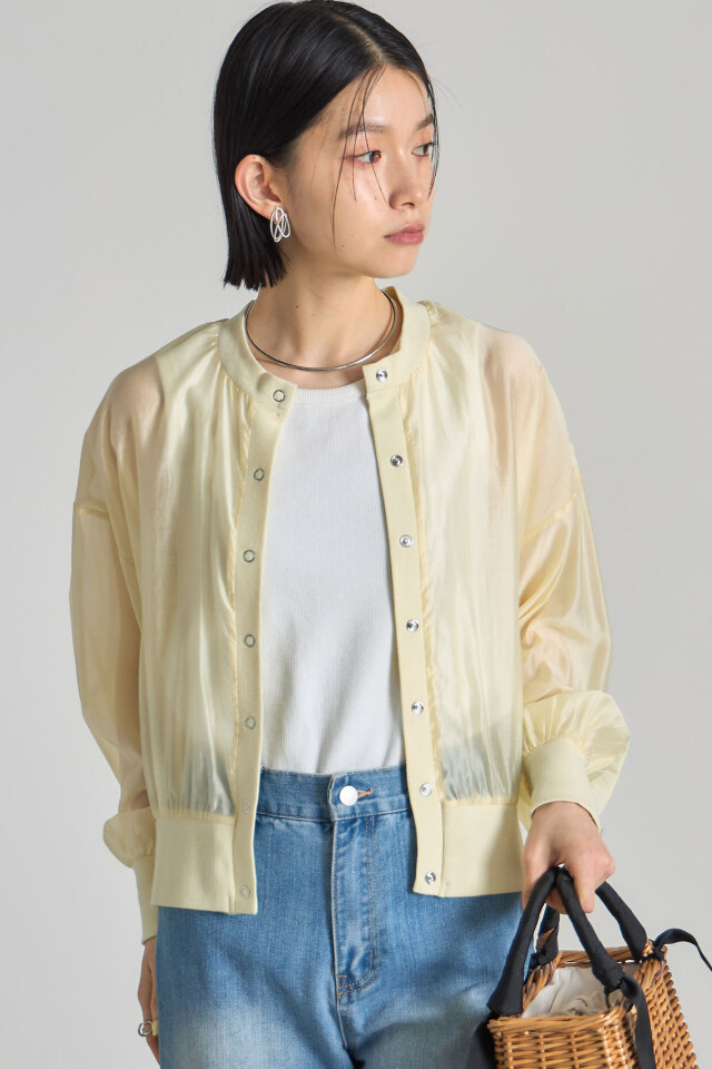 | 商品説明 | ≪ Attention:販売日、在庫状況はWEBと店舗と異なります。予めご了承くださいませ。≫ 軽やかさと抜け感をプラスするシアーブルゾン 透け感のある素材が、涼しげで軽やかない印象のブルゾンです。 カジュアルながらも女性らしさを演出できるアイテムです。 カラー展開もベーシックなホワイト、ブラックに加え、イエロー、ブルーと華やかなカラー展開 なのでお手持ちのアイテムに合わせてコーディネートを楽しんで! |