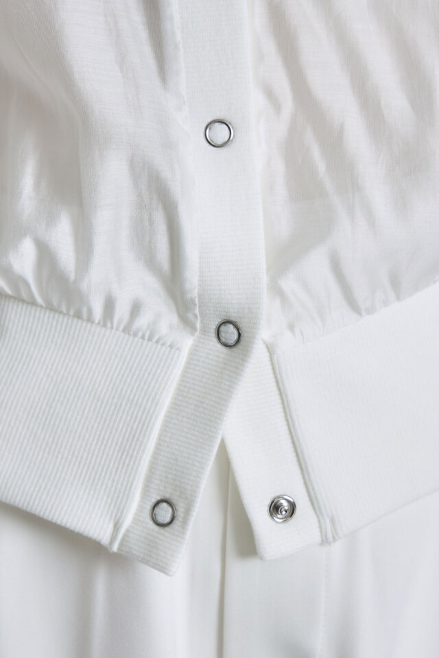 リブ/ポリエステル63% 綿32% ポリウレタン5% (中国製・伸縮性なし・透け感あり・裏地なし) |