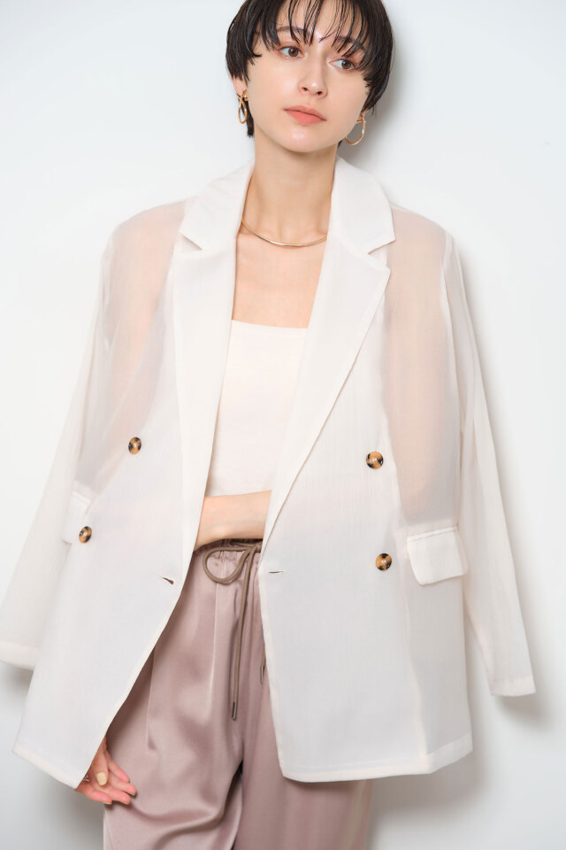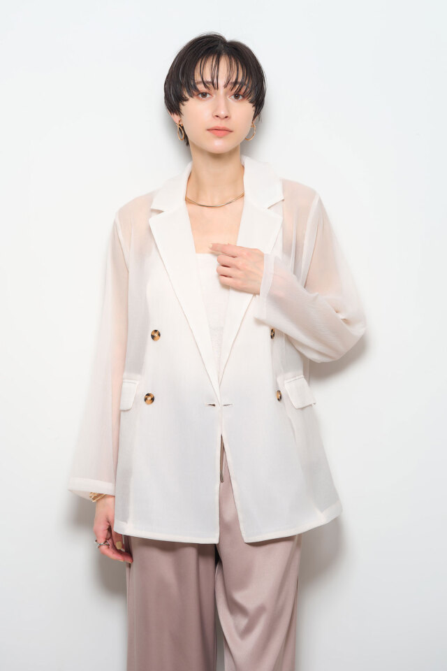| 商品説明 | : | 《mayo's point》 夏でも羽織れるように 涼しげな透け感のある素材にしました。 シャツ感覚でさっと羽織れて、羽織るだけでさまになります。 シワになりにくい素材だから、持ち運びもしやすくて冷房対策にも◎ |