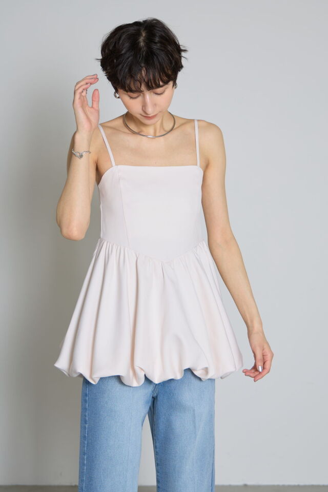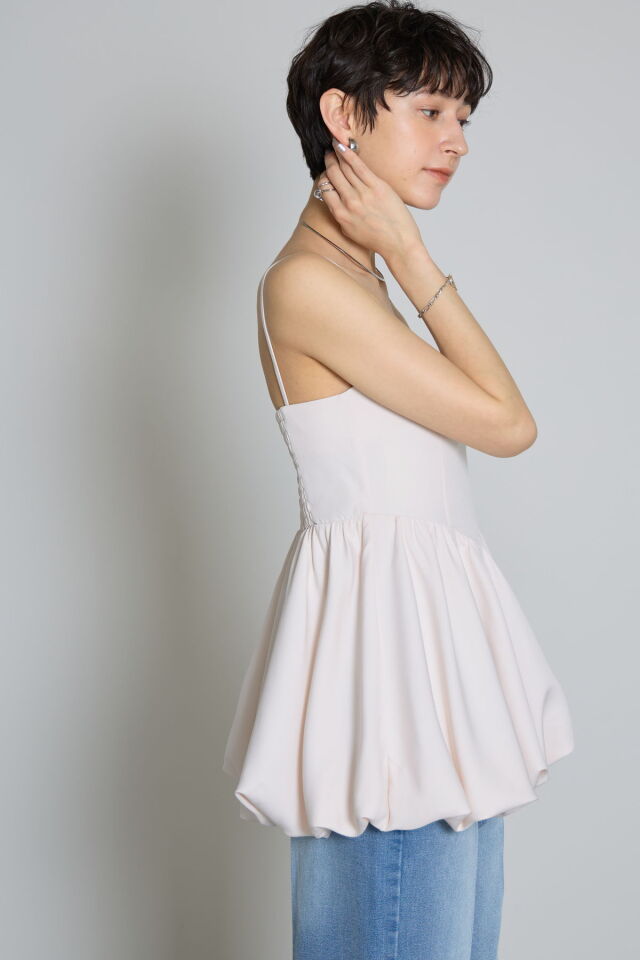 | 商品説明 | : | ふんわりシルエットが愛らしい。主役級バルーンビスチェ 裾のバルーンシルエットが目を惹くフェミニンなキャミソールタイプのビスチェです。 華奢な肩紐とスクエアネックのデザインがデコルテラインを美しく見せてくれます。 1枚でももちろん、シンプルなインナーに重ねるだけで、コーディネートの主役級になるアイテムです。 |