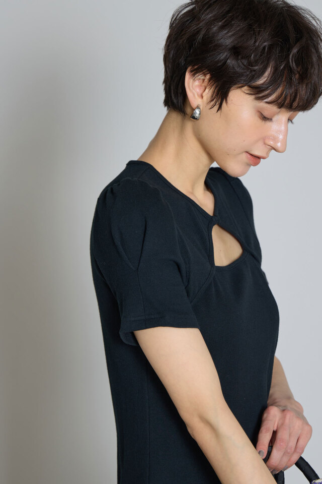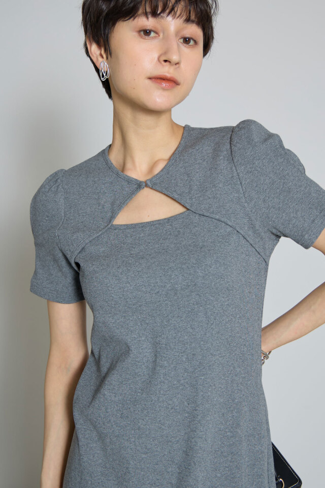| 商品説明 | : | シンプルながらもさ特徴的な首元のカットデザインが光るワンピース ほんのり肌が見えることで、抜け感と女性らしさをプラス。 ふんわりとしたパフスリーブがフェミニンな雰囲気を演出してくれます。 |