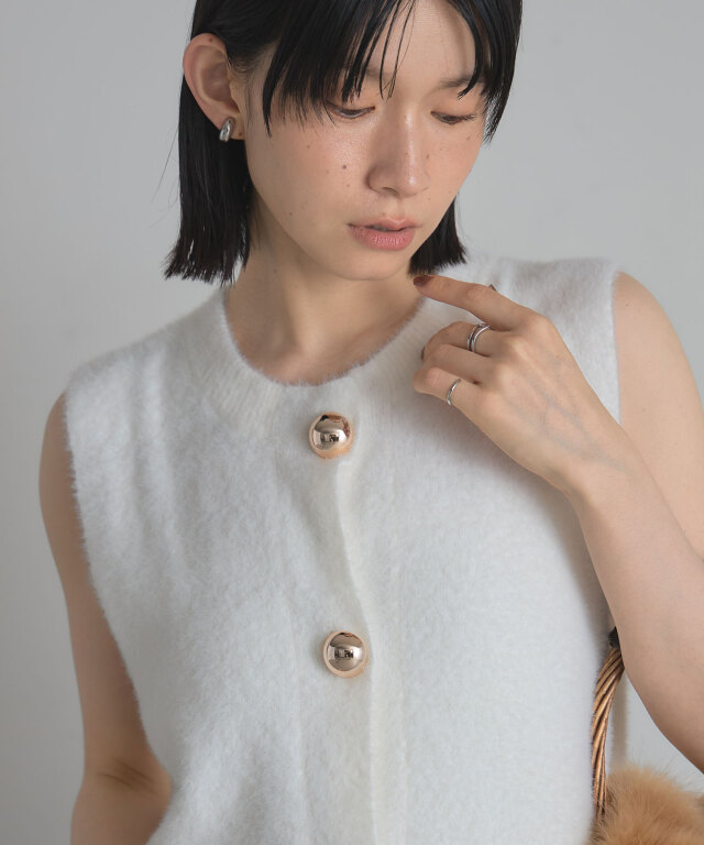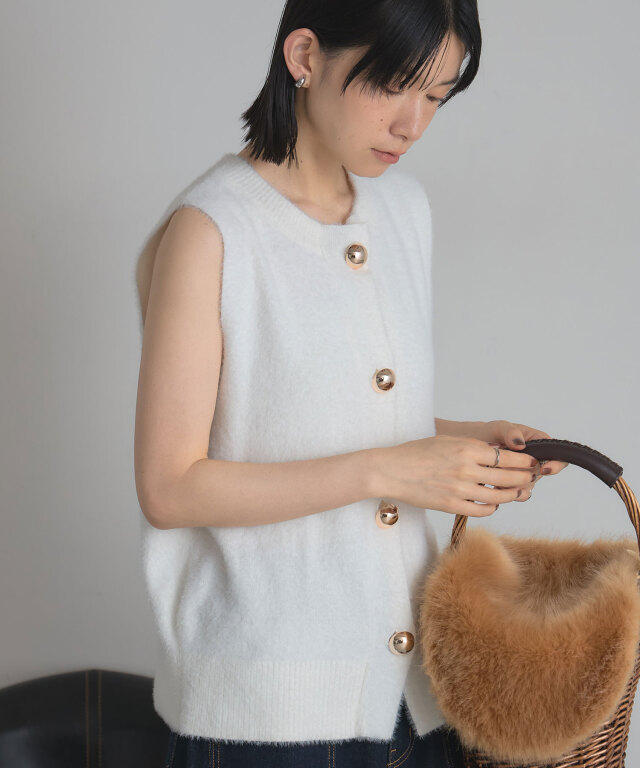 | 商品説明 | : | &NOSTALGIAの定番人気アイテム!うさぎのように愛らしい、フェザーヤーンプルオーバー。 まるでうさぎの毛並みを思わせるようなふんわりフェザーが魅力のノースリーブニット。 優しい手触りとほどよい毛足感が、シーズンムードをぐっと高めてくれる一枚です。 シンプルなシルエットながら、表面感のある素材がスタイリングに立体感をプラスし、着るだけでこなれた雰囲気に。 ボタンを留めてトップスとしても、開けてジレ感覚でレイヤードしても楽しめる着回し力の高さも魅力。 程よくゆとりのあるサイズ感が体のラインを拾わず、リラクシーながらも女性らしさを引き立ててくれます。 スカートを合わせてフェミニンに、デニムでカジュアルダウンさせて抜け感を演出するなど、幅広いスタイルにマッチ。 ふんわりとした素材感と愛らしい表情を兼ね備えた、大人のための癒し系ニットです。 |