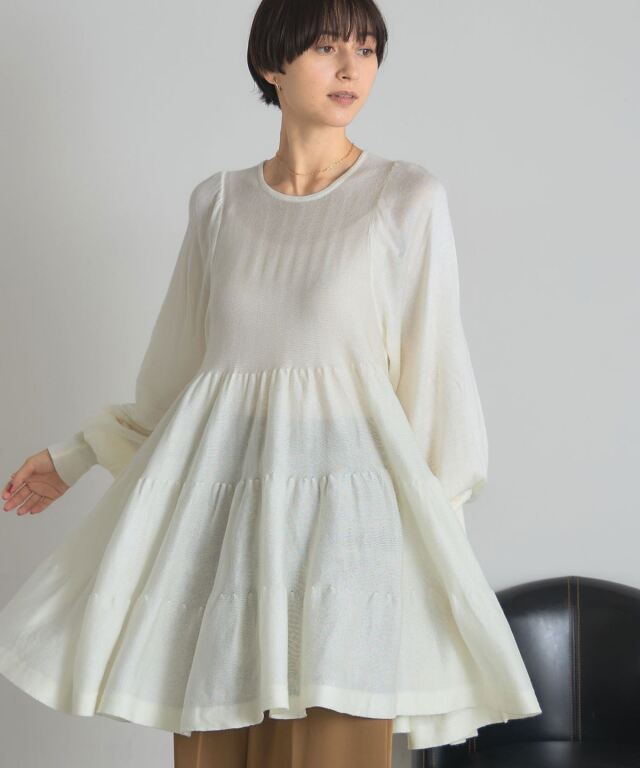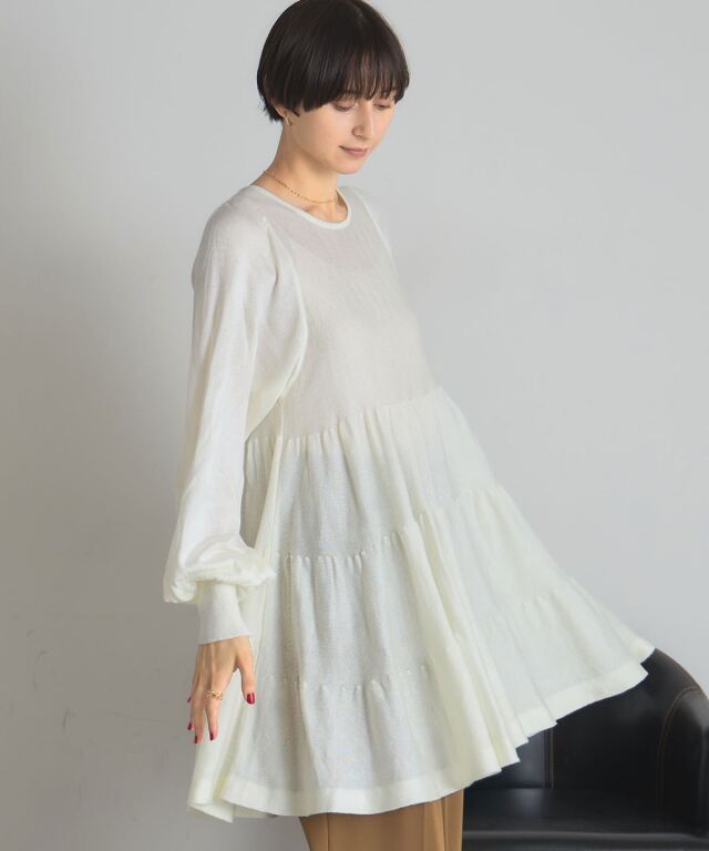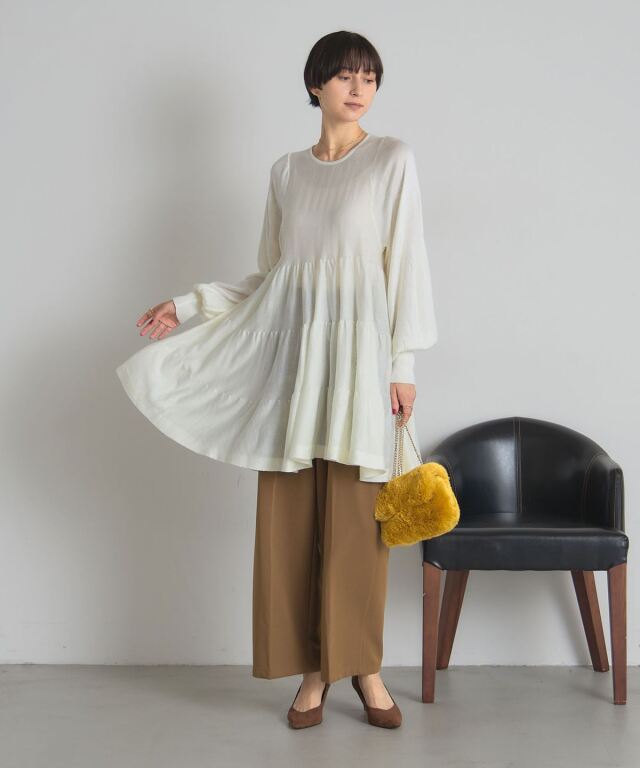 | 商品説明 | : | 軽やかに揺れるシルエットが、女性らしさを引き立てる一枚。 ふんわりとしたティアードシルエットとボリュームスリーブが目を引く、 フェミニンな印象のチュニックトップス。 軽やかな素材感で着心地も抜群。 シンプルながらも存在感があり、デニムやレギンスとのレイヤードスタイルもおすすめです。 さっと着るだけで華やかさが増し、オンオフ問わず活躍してくれる万能アイテム。 ブーツ合わせで秋冬らしさをプラスした、旬のスタイリングが完成します。 |