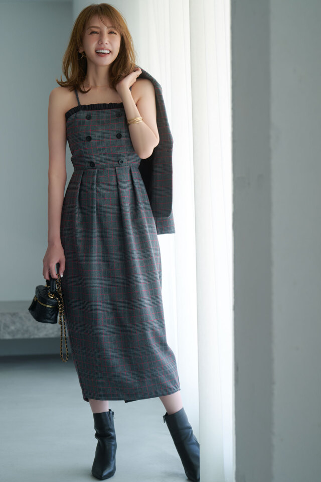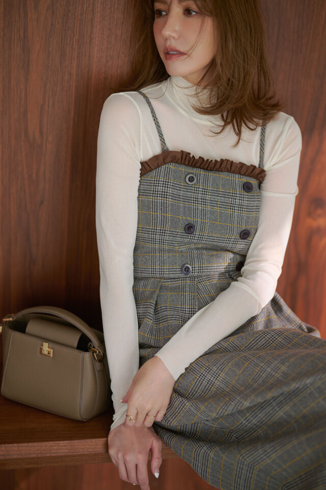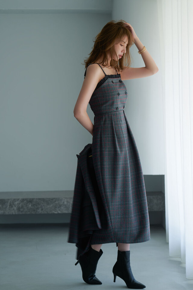 クラシカルなチェック柄と端正なシルエットが魅力のチェックベアワンピース