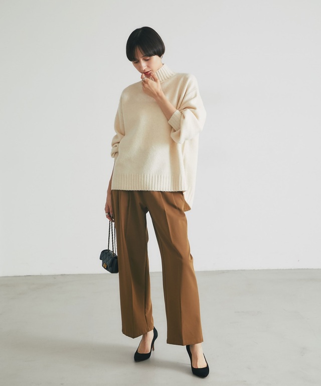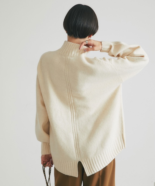 | 商品説明 | : | 後ろ姿に差がつく、スリット入りハイネックニット。 柔らかな風合いが魅力のハイネックニット。 ゆったりとしたシルエットでリラクシーな着心地ながら、背中に入ったスリットデザインが軽やかな抜け感をプラスします。 ボリューム袖が女性らしさを演出し、すっきりとした首元とのバランスも絶妙。 シンプルながら一枚でスタイルが決まり、スカートやパンツとも相性良く着回せる万能アイテムです。 |