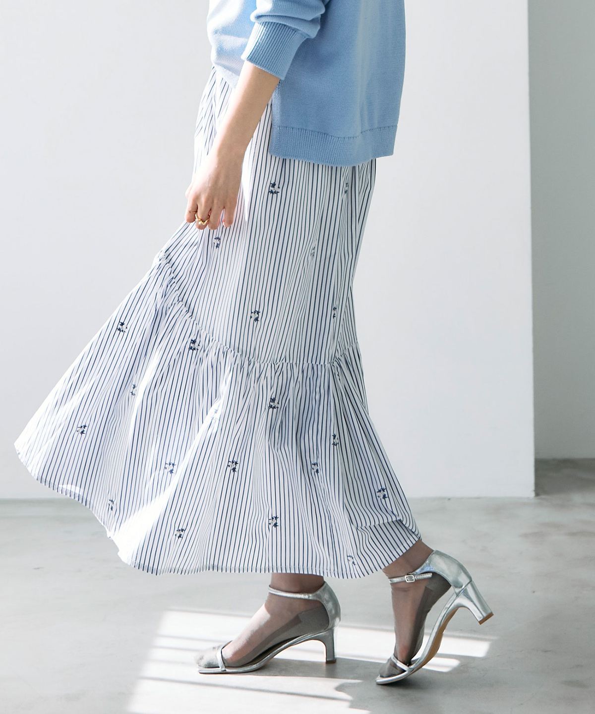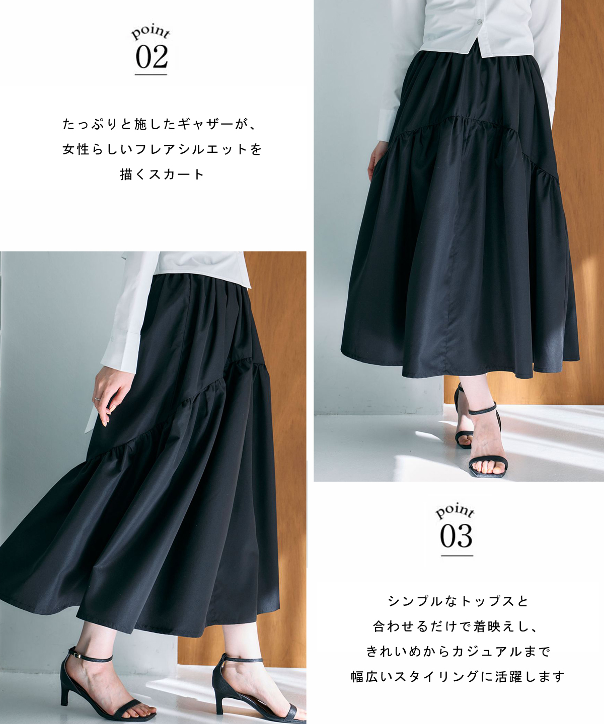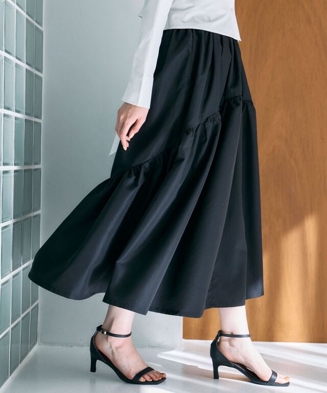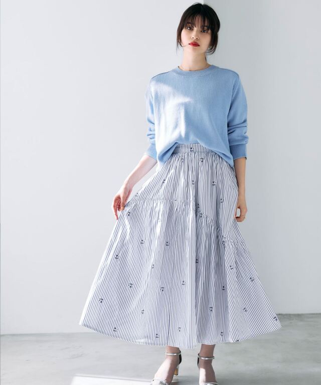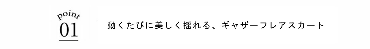 | 商品説明 | : | 動くたびに美しく揺れる、ギャザーフレアスカート。 たっぷりと施したギャザーが、女性らしいフレアシルエットを描くスカート。 歩くたびにふんわりと揺れ、コーディネートに柔らかな華やぎを添えます。 ウエストまわりはすっきりと仕上げ、トップスをインしても美しいバランスに。 軽やかな素材感で、季節を問わず着用しやすいのも魅力です。 シンプルなトップスと合わせるだけで着映えし、きれいめからカジュアルまで幅広いスタイリングに活躍します。 |