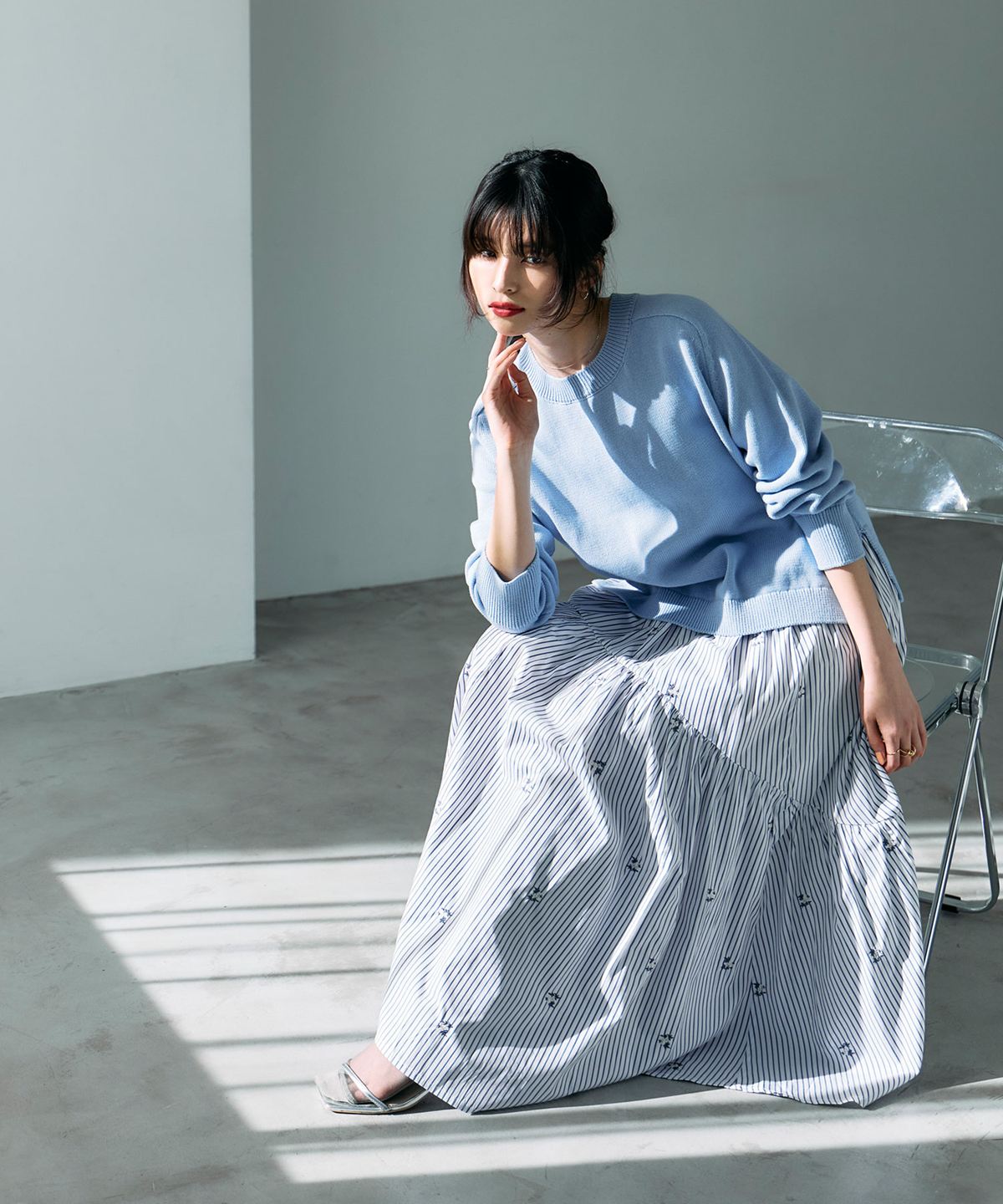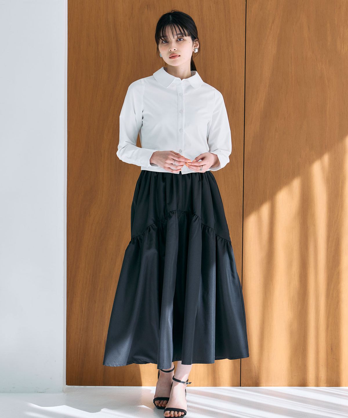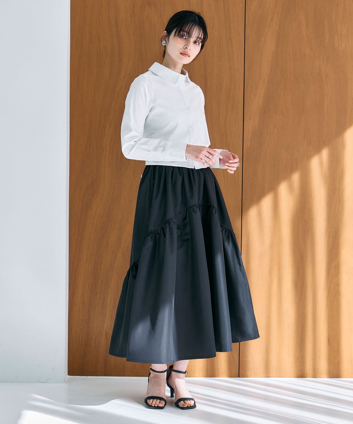 | 商品説明 | : | 動くたびに美しく揺れる、ギャザーフレアスカート。 たっぷりと施したギャザーが、女性らしいフレアシルエットを描くスカート。 歩くたびにふんわりと揺れ、コーディネートに柔らかな華やぎを添えます。 ウエストまわりはすっきりと仕上げ、トップスをインしても美しいバランスに。 軽やかな素材感で、季節を問わず着用しやすいのも魅力です。 シンプルなトップスと合わせるだけで着映えし、きれいめからカジュアルまで幅広いスタイリングに活躍します。 |