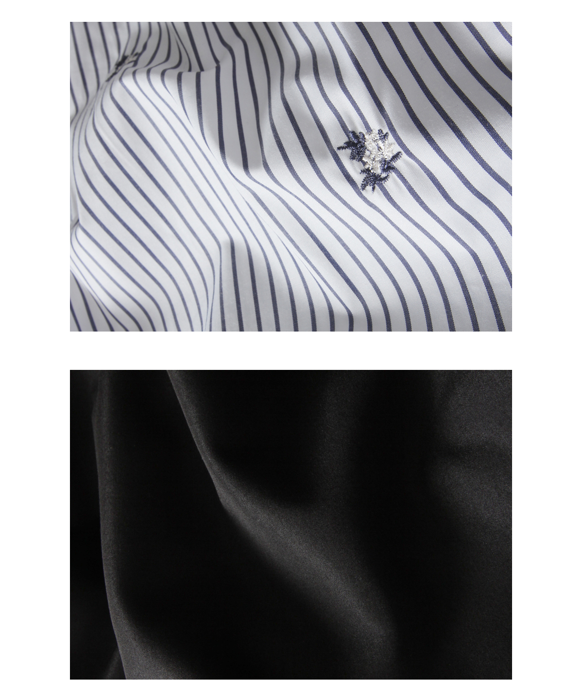 無地/ポリエステル97% 綿3% ストライプ/綿60% ポリエステル40%(刺繍糸:ポリエステル100%) 裏地/ポリエステル100% (中国製・伸縮なし・透け感なし・裏地あり) |