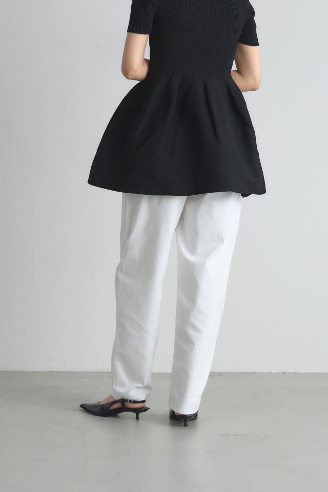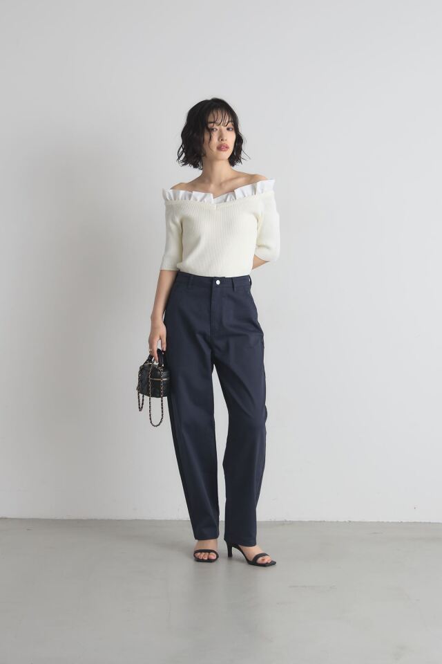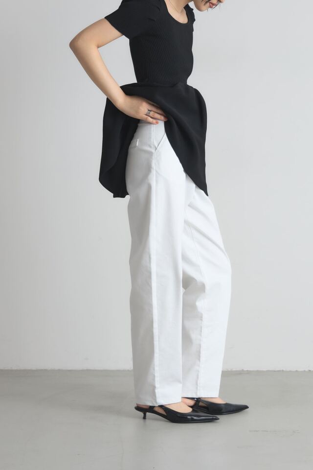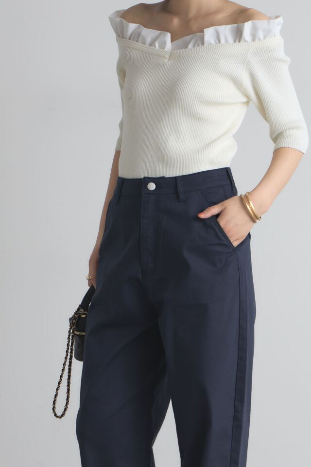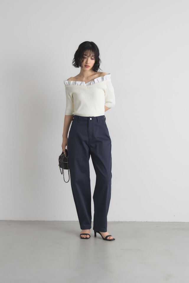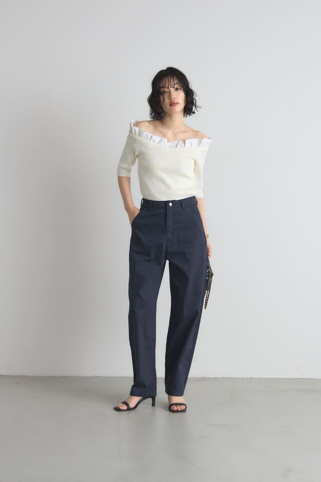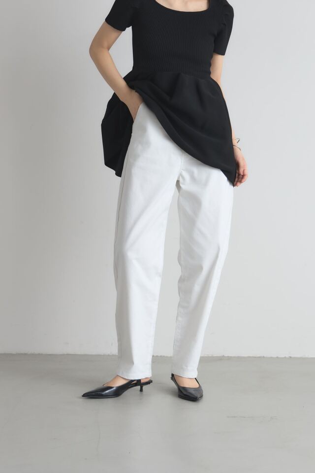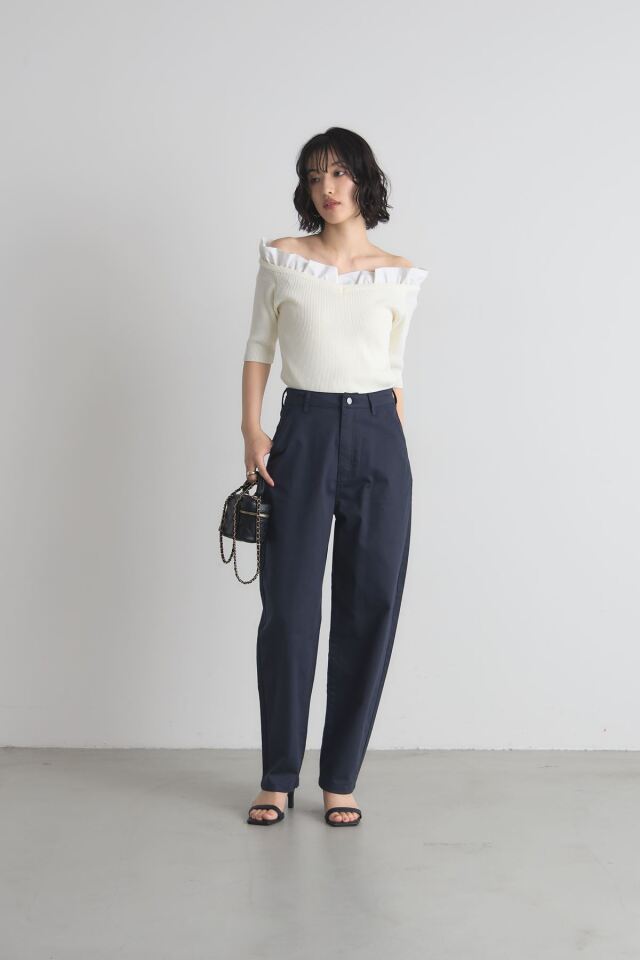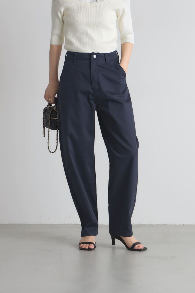 | 商品説明 | ≪ Attention:販売日、在庫状況はWEBと店舗と異なります。予めご了承くださいませ。≫ トレンド感のあるシルエットが魅力のボンタンカーブパンツ ウエストから裾にかけて丸みを帯びたカーブを描くデザインが、脚のラインを美しく見せつつ リラックス感のある履き心地を実現します。 裾に向かって細くなるシルエットなので、ルーズになりすぎず、すっきりとした印象に ホワイトとネイビーのベーシックな2色展開で合わせやすく カジュアルなTシャツからきれいめなブラウスまで幅広いスタイリングに活躍します |