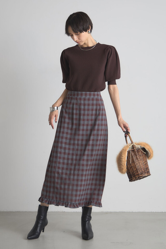 | 商品説明 | : | クラシカルなチェック柄に裾のフリルがアクセントになったタイトスカート 広がりすぎない上品なタイトシルエットが、大人の女性らしい洗練された印象を与えます。 裾のフリルが、フェミニンな雰囲気をプラス。 ニットやブラウスなど、どんなトップスとも相性が良く、幅広い着こなしが楽しめます。 |