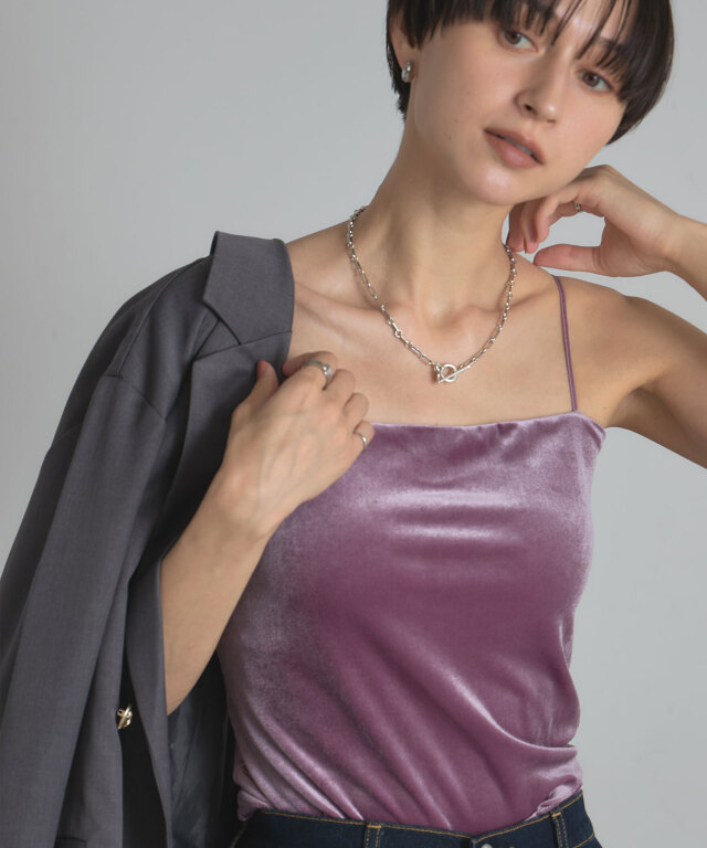 | 商品説明 | : | 1枚でも、レイヤードでも。大人の魅力を引き出すベロアキャミソール。 上品な艶感が魅力のベロア素材を使用したカップ付きキャミソール。 肌なじみの良い柔らかな質感と、華奢なストラップが女性らしさを引き立て、 1枚でさらりと着ても、インナー使いしても様になる優秀アイテムです。 ジャケットやカーディガン、ニットのインナーとしてレイヤードすれば、 コーディネートに程よい抜け感と色気をプラス。 秋冬のスタイリングに、さりげないアクセントを添えてくれる一枚です。 ※カップは取り外し可能です。 |
