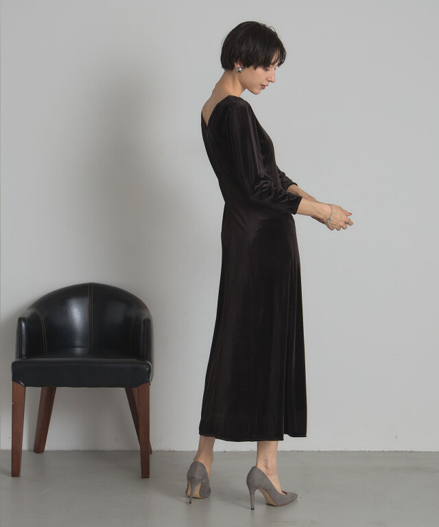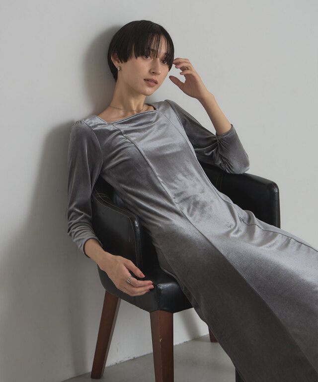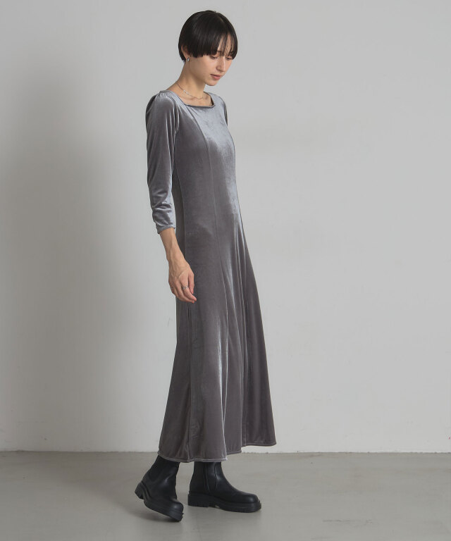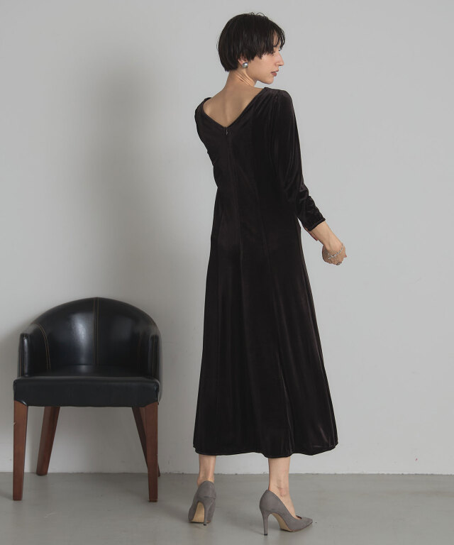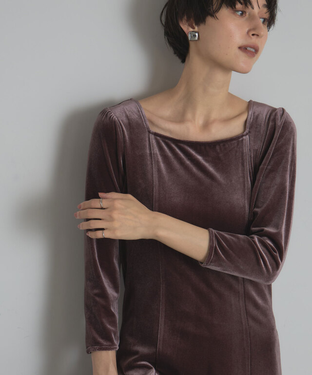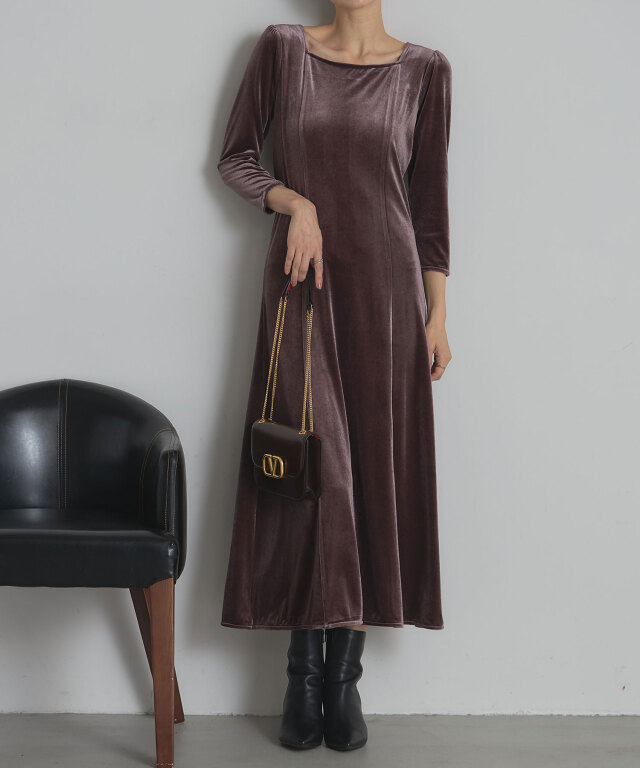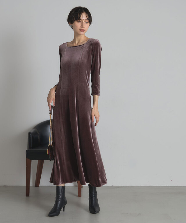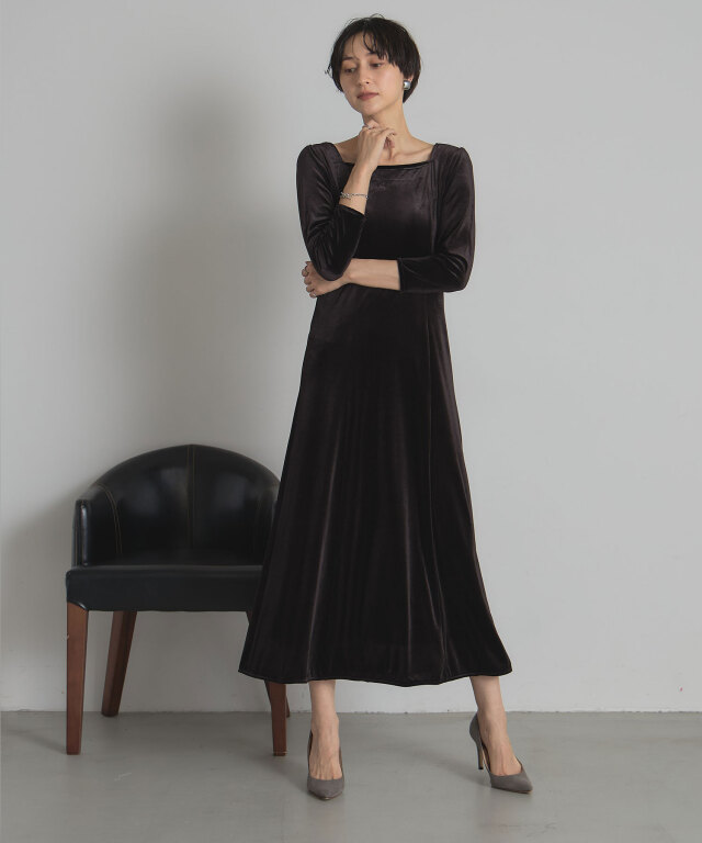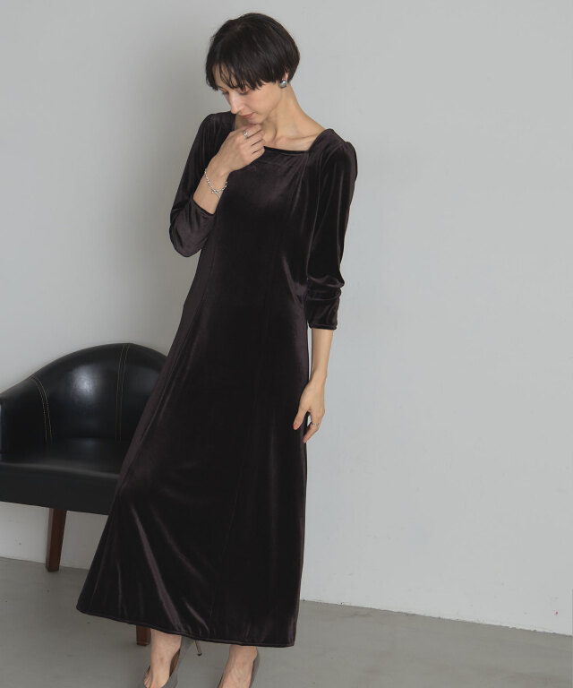 | 商品説明 | : | 上品な光沢と美しいシルエットで魅せる、特別な日の一着。 柔らかな光沢感が魅力のベロア素材を使用した、エレガントなロングワンピース。 体にほどよくフィットする上半身と、裾にかけて美しく広がるフレアシルエットが、 スタイルアップを叶えつつ女性らしさを引き立てます。 デコルテをきれいに見せるボートネックと、すっきりとした7分袖が上品な印象を演出。 シンプルながら存在感のあるデザインは、パーティーやディナーなどのオケージョンシーンはもちろん、 ジュエリーや小物次第で幅広いスタイリングが楽しめます。 |