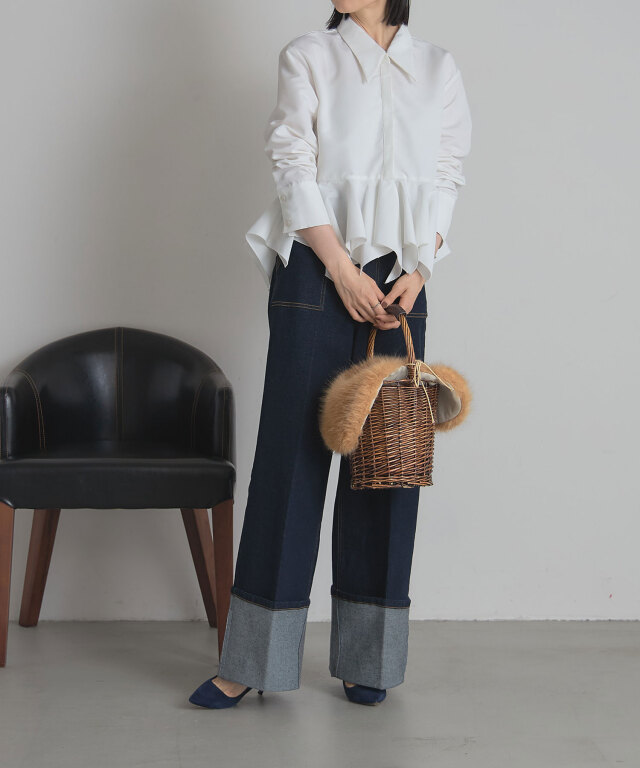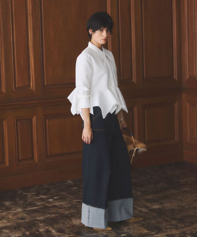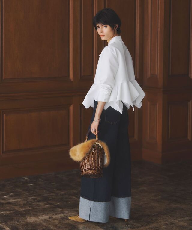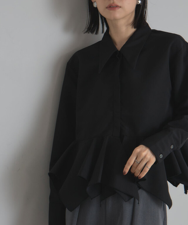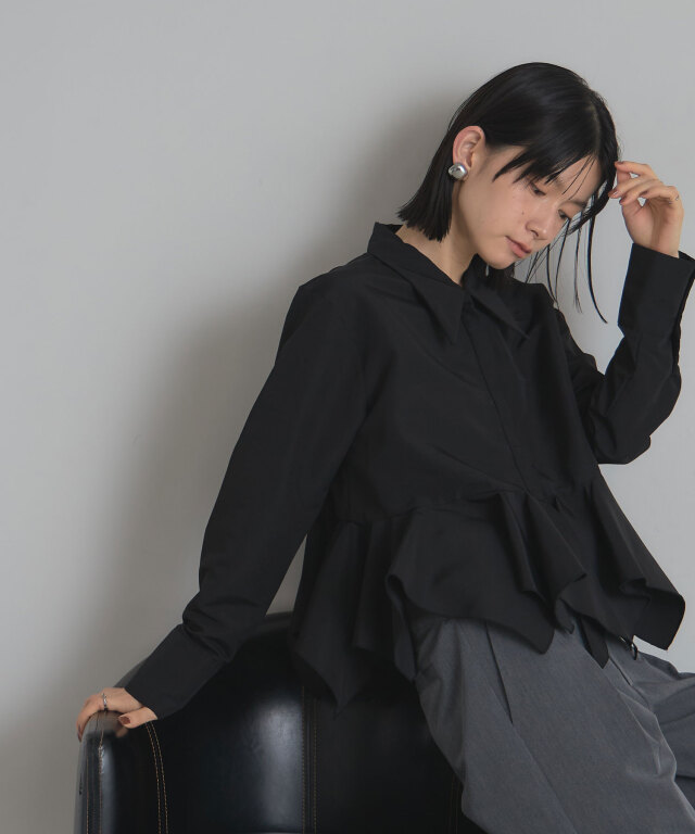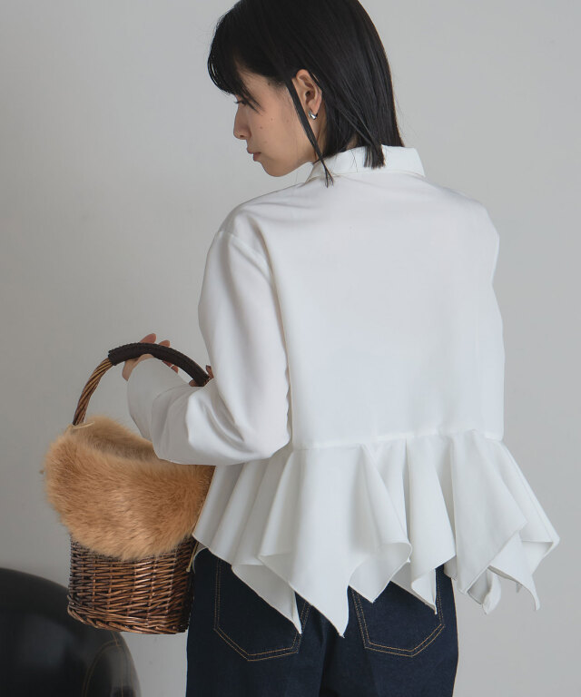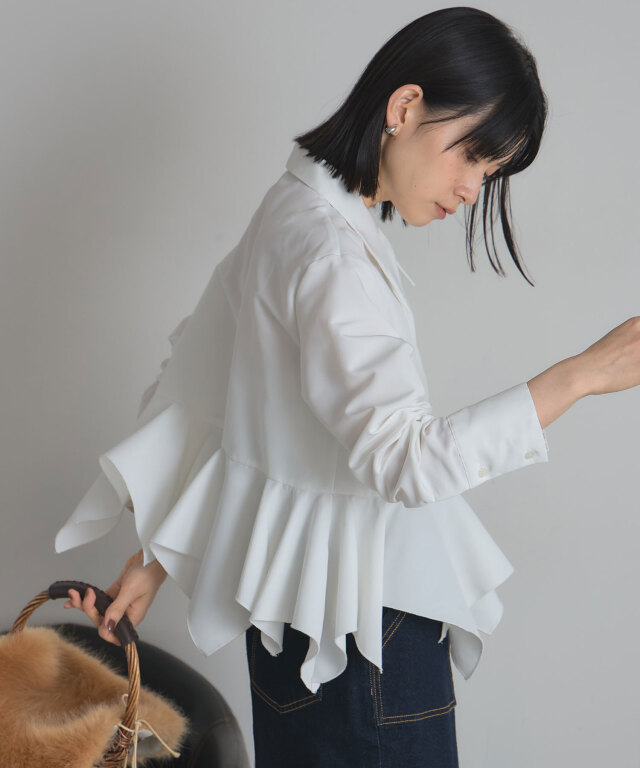 | 商品説明 | : | ドラマチックに揺れるランダムヘムが印象的なデザインシャツ ランダムに施されたフリルデザインが目を引くシャツ。 裾の柔らかなボリューム感がスタイルカバーしつつ、 華やかかつフェミニンな雰囲気を漂わせます。 シンプルながらも1枚で着映えするアイテムです。 |