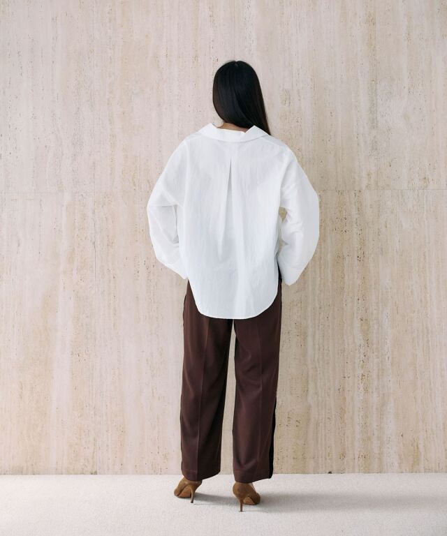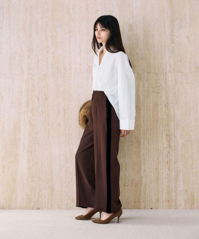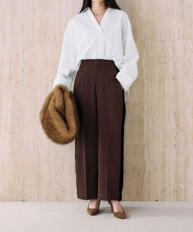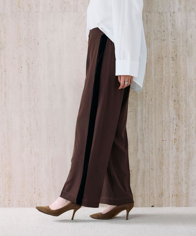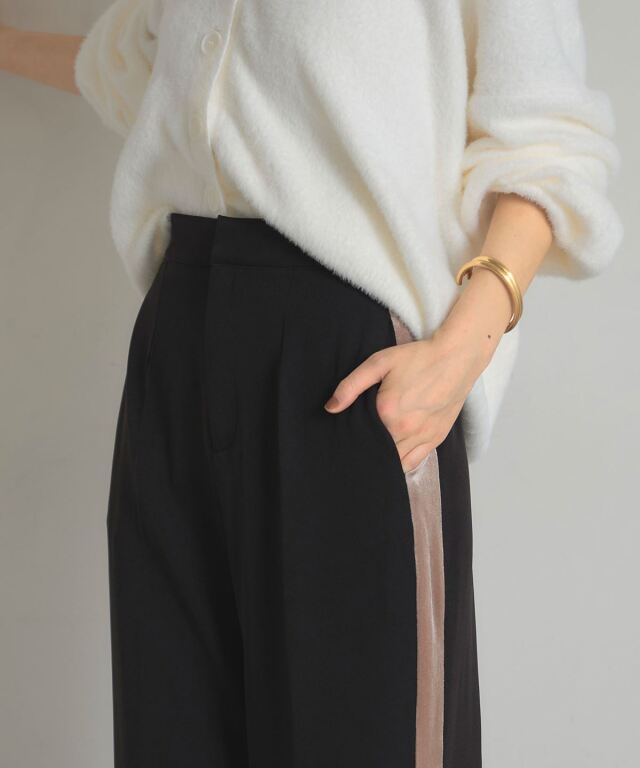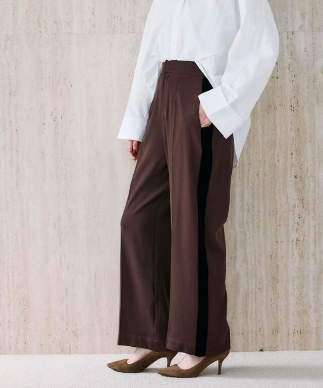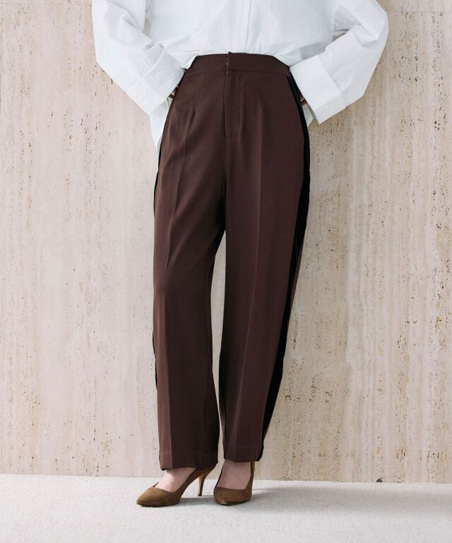 | 商品説明 | : | 洗練シルエットに映える、ベロアラインパンツ。 つるりとしたストレッチ素材にセンタープレスを施し、美しいレッグラインを演出するパンツ。 サイドのベロアラインがさりげなく光沢を添え、上品なアクセントになります。 ウエストは後ろゴムで快適ながら、前立て仕様ですっきりとした印象に。 ポケット付きで実用性も兼備。 ブラウスやジャケットと合わせればオフィスやお出かけにも映える、きれいめスタイルに最適な一本です。 |