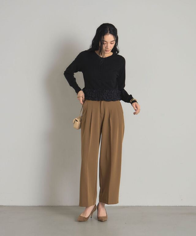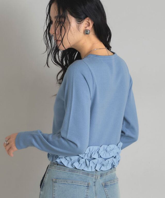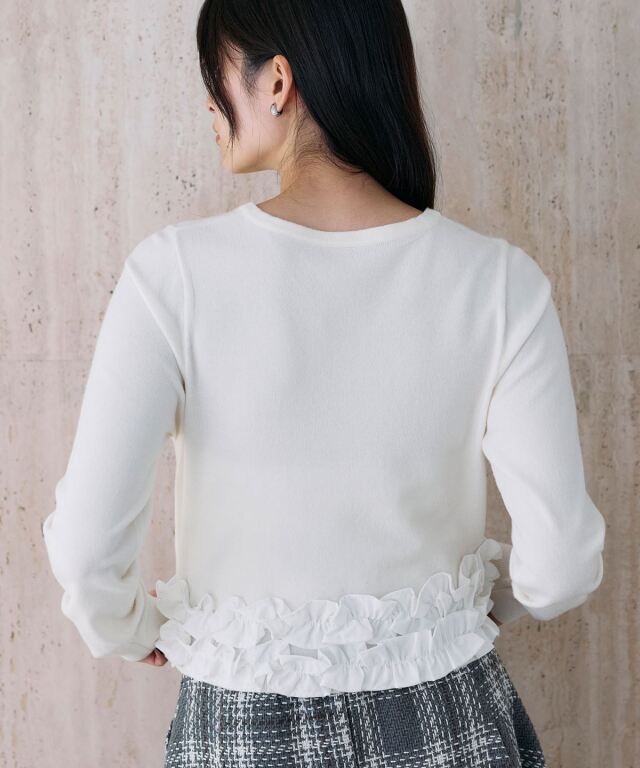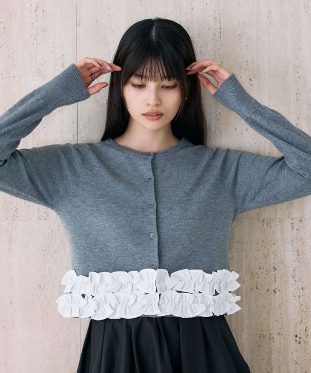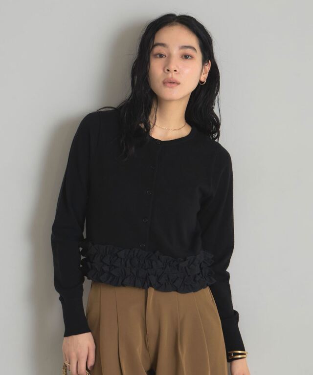 | 商品説明 | : | 裾フリルで、さりげなく可愛さをプラス。 軽やかなシルエットに仕立てた、裾フリルが印象的なカーディガン。 短めの丈感でウエスト位置をすっきり見せ、ボリュームのあるボトムとの相性も抜群です。 柔らかな素材感が女性らしさを引き立て、着るだけでコーディネートに可憐なアクセントをプラス。 デイリー使いはもちろん、ちょっとしたお出かけや特別なシーンにも活躍してくれる一枚です。 |