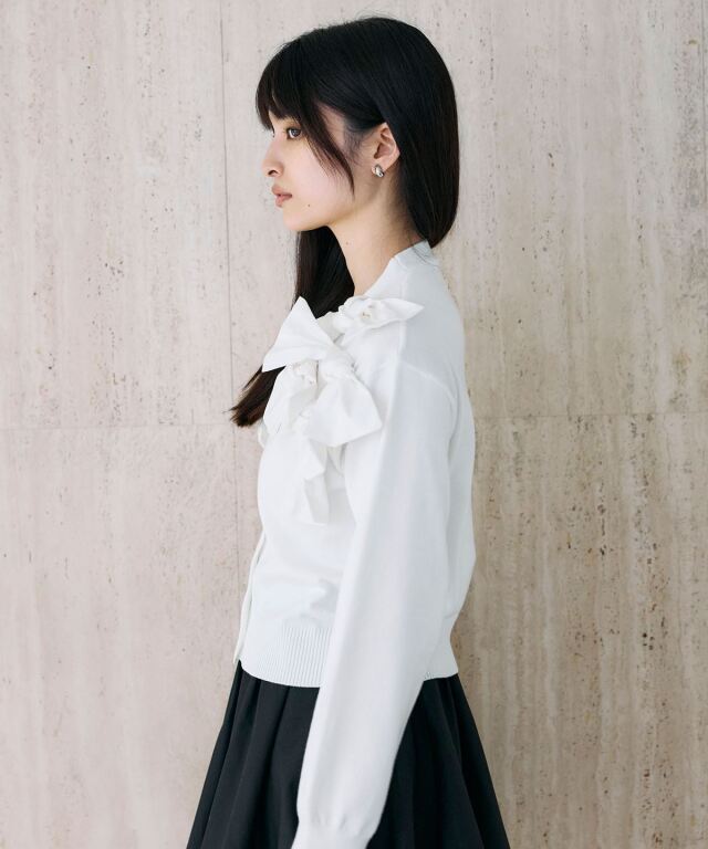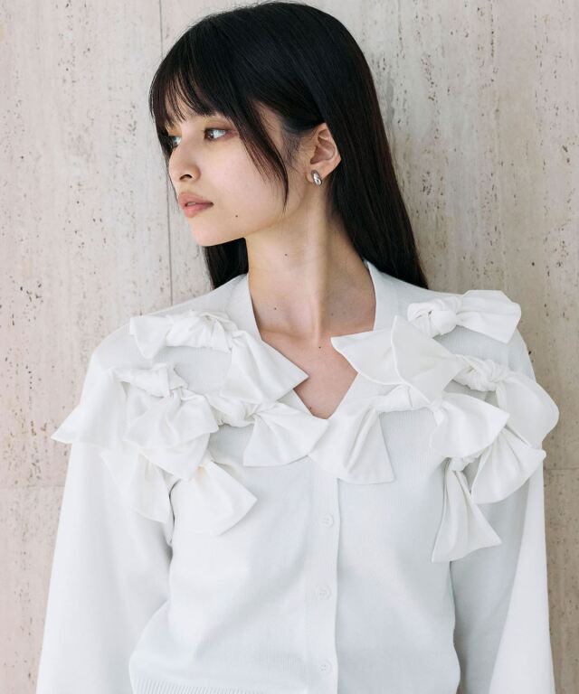 | 商品説明 | : | 甘さと洗練をひとさじに。 立体的にあしらったリボンディテールが視線を惹きつけるカーディガン。 柔らかなニット地で仕立てられ、ほどよいフィット感と軽やかな着心地を叶えます。 フロントのリボンは存在感がありながらも上品なニュアンスを演出し、 デニムやスカートと合わせるだけで華やかなスタイリングに。 シンプルなボトムと合わせることで、リボンのデザインが主役になる一枚です。 【着用に関するご案内】 胸元のリボン部分は、発送時には結ばれていない状態となっております。 お手元に届くきましたら、一度固結びをしてリボンを作って着用ください。 |