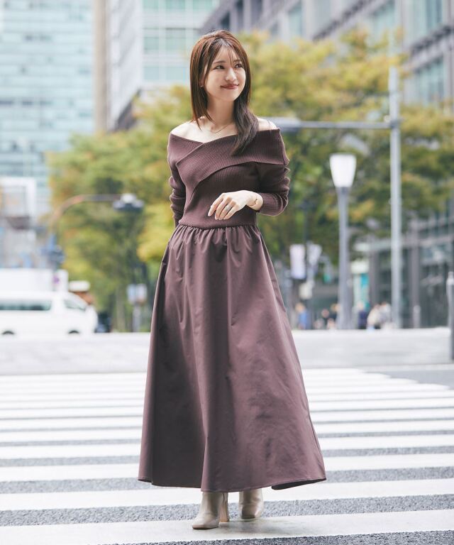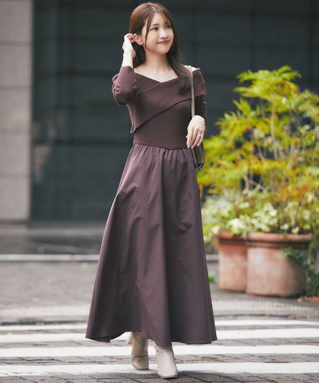 | 商品説明 | : | 《ayako’s point》 1枚でコーディネートが完成するニットドッキングワンピース。 オフショルで着用する事でデコルテの映えるセンシュアルなデザインが魅力的。 程よいフィット感とVネックラインが女性らしく綺麗なボディラインを演出する1枚。 ウエストの切替は少し上に設定しているので、スタイルアップ効果抜群。 ニット部分は柔らかい、もちっとした素材を使用しているので肌触りも良くなっています。 スカートにはタフタの素材を使用し、ふんわりとしたシルエットをキープしてくれます。 ボートネックと、デコルテラインがきれいに見えるオフショルで着られる2wayデザインで、お好みの着こなしを楽しめます。 |