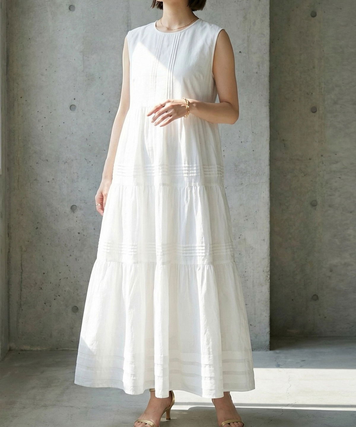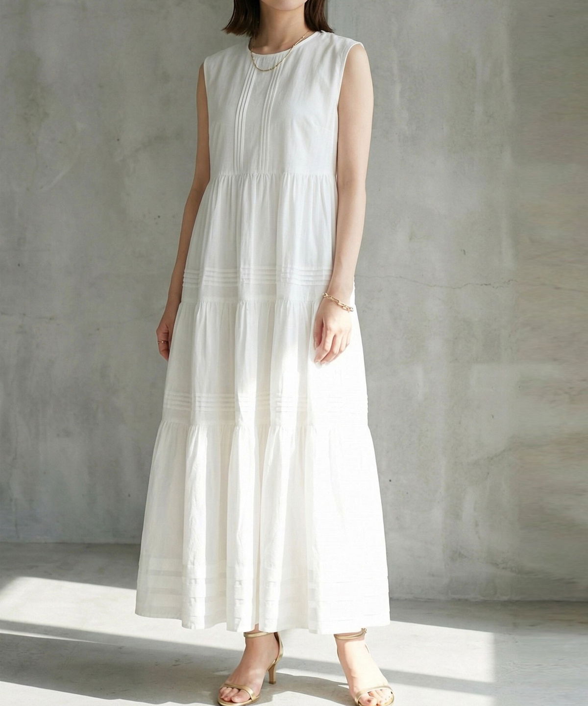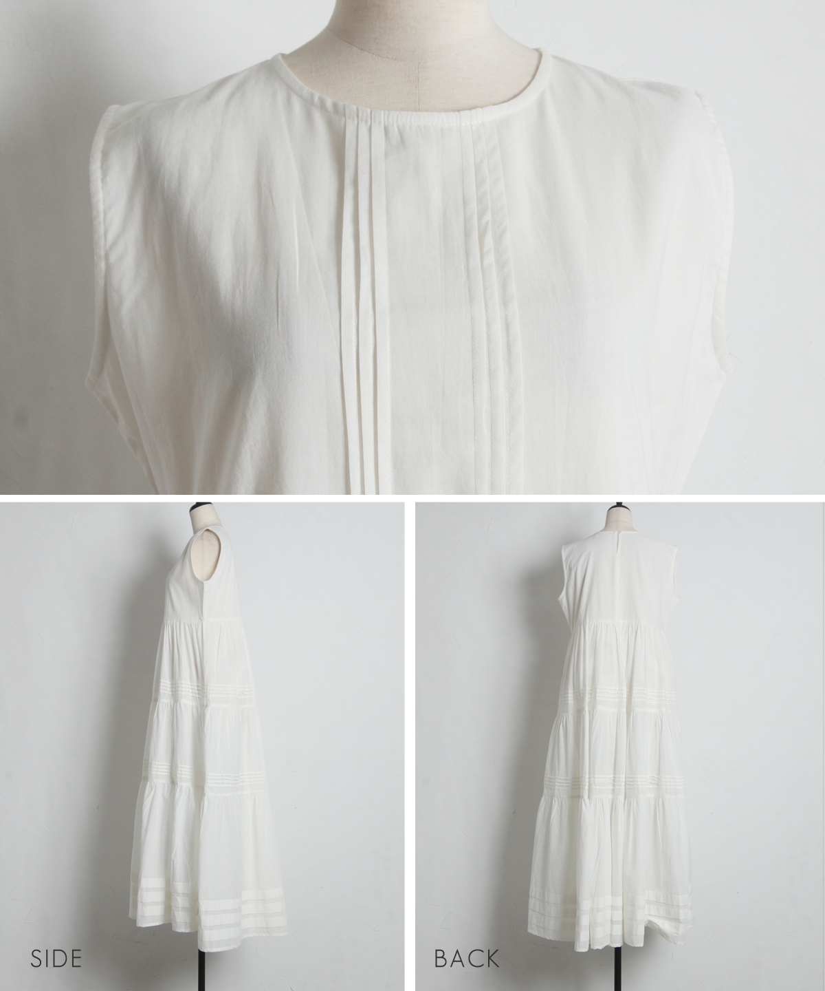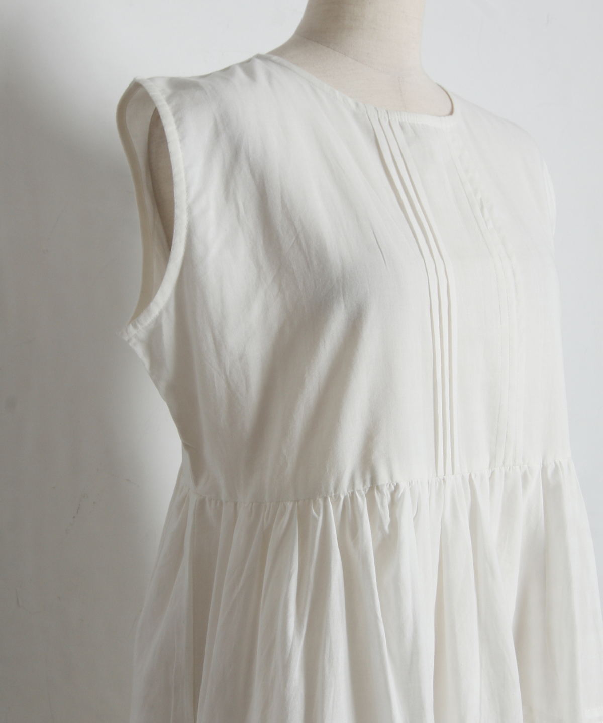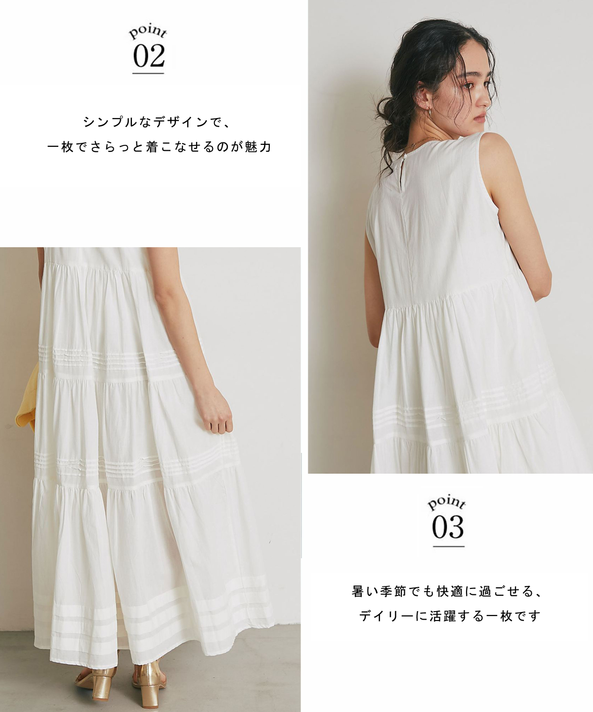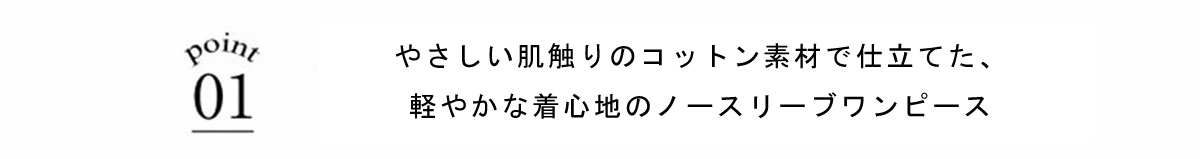 やさしい肌触りのコットン素材で仕立てた、 軽やかな着心地のノースリーブワンピース。 シンプルなデザインで、 一枚でさらっと着こなせるのが魅力。 ナチュラルな風合いが、涼しげでやわらかな印象を演出します。 暑い季節でも快適に過ごせる、 デイリーに活躍する一枚です。 |