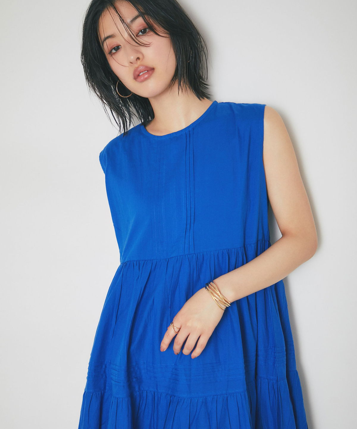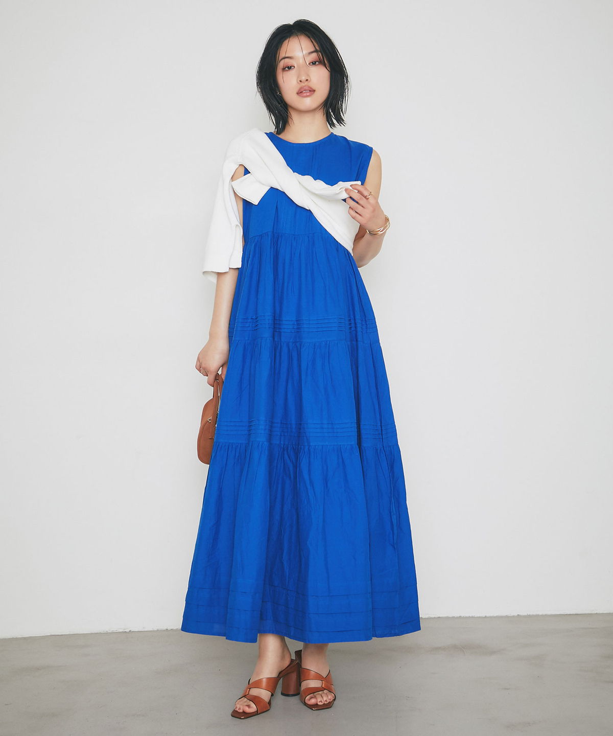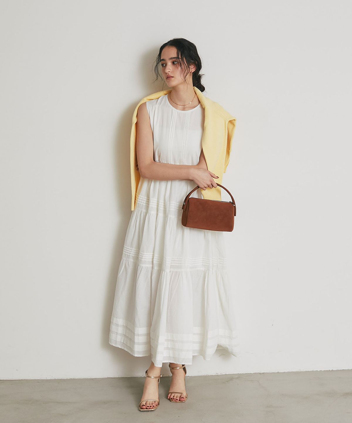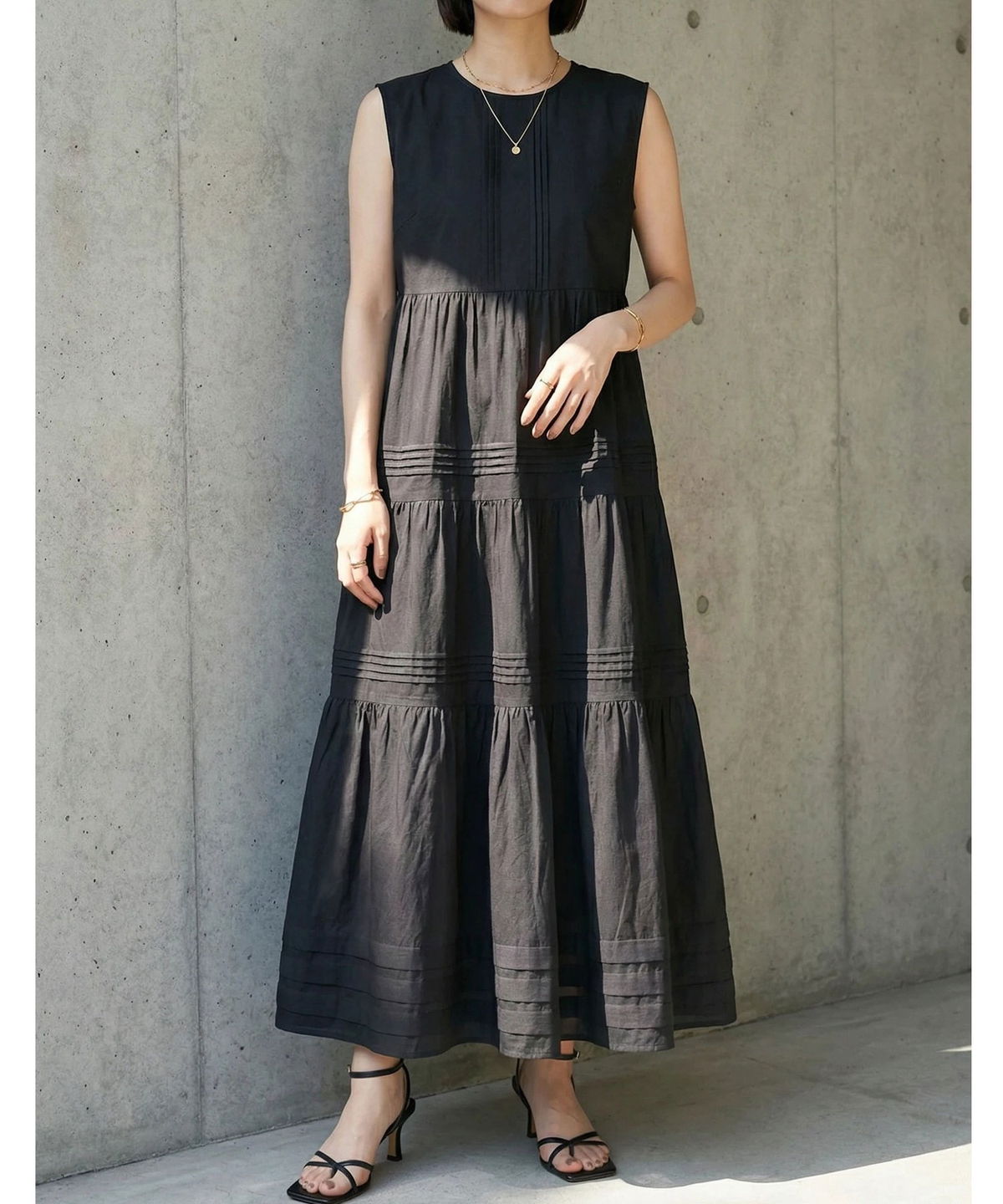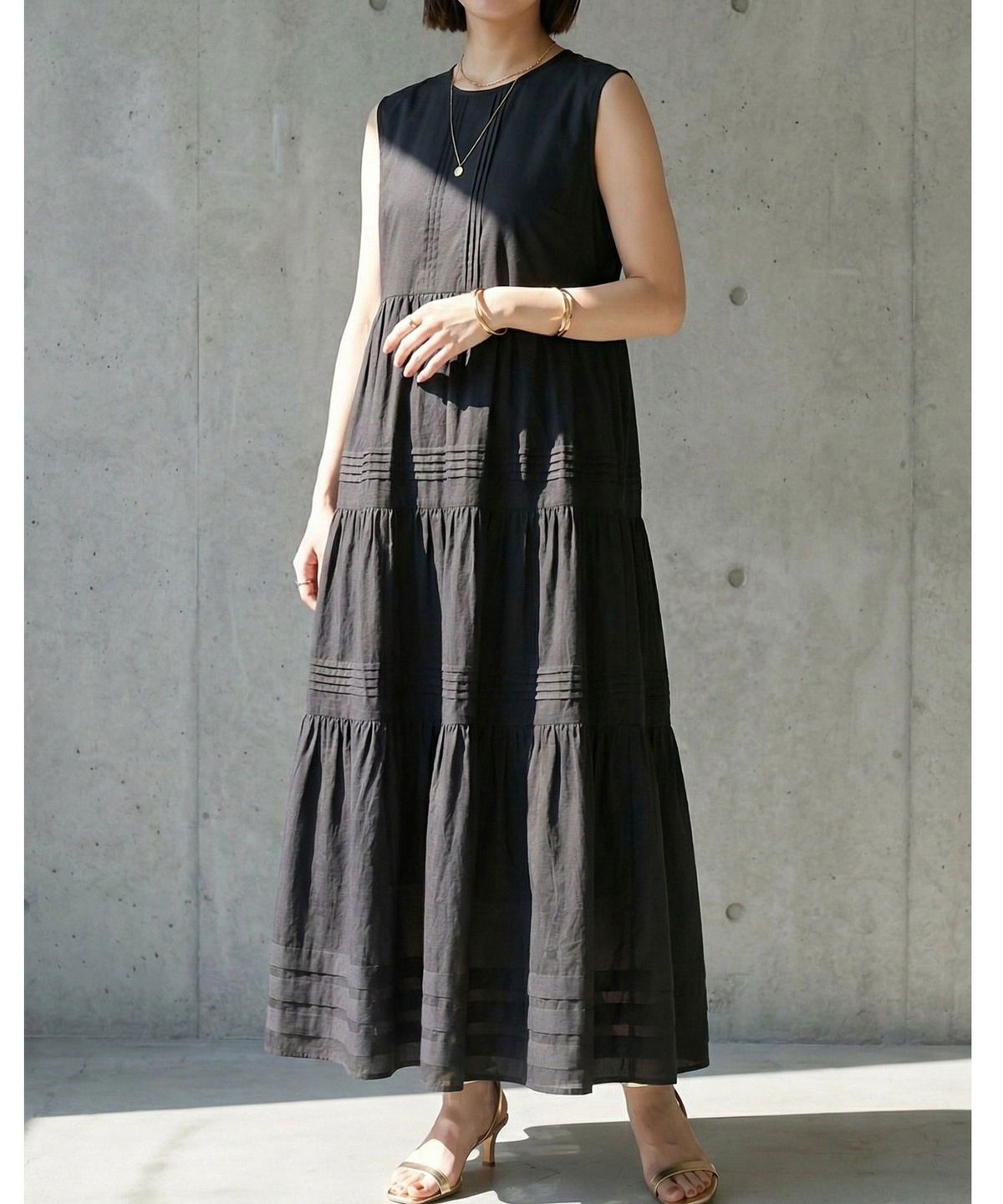 やさしい肌触りのコットン素材で仕立てた、 軽やかな着心地のノースリーブワンピース。 シンプルなデザインで、 一枚でさらっと着こなせるのが魅力。 ナチュラルな風合いが、涼しげでやわらかな印象を演出します。 暑い季節でも快適に過ごせる、 デイリーに活躍する一枚です。 |