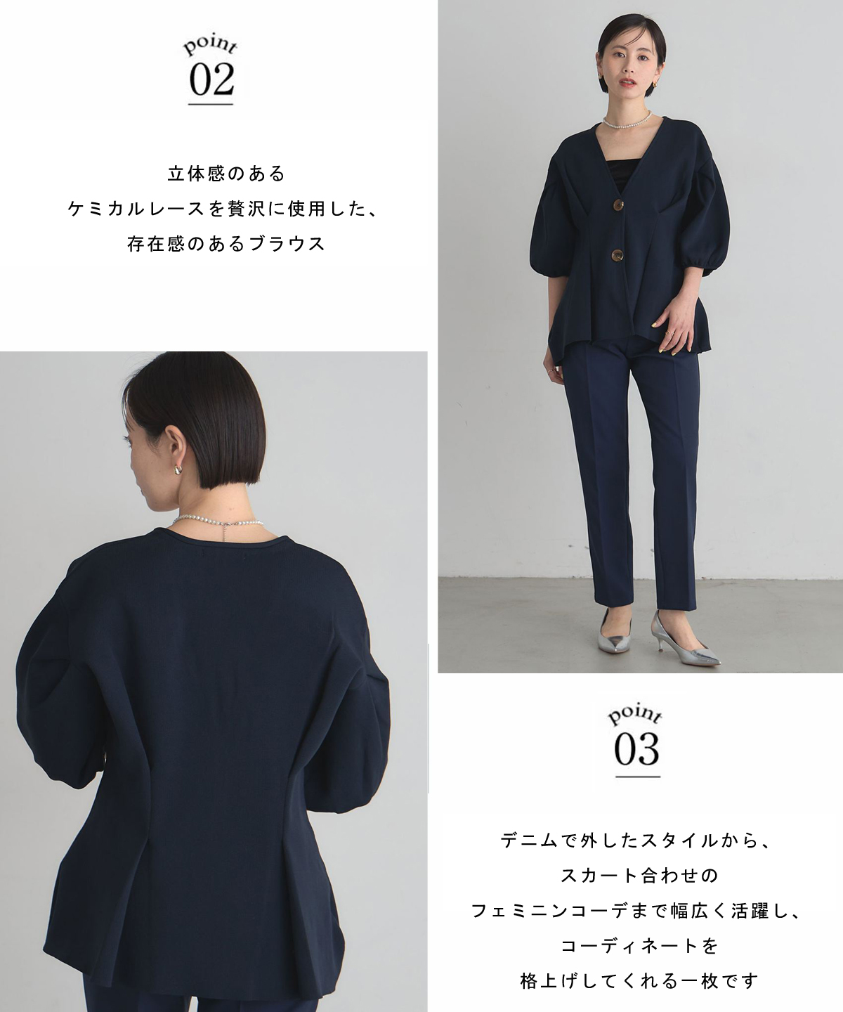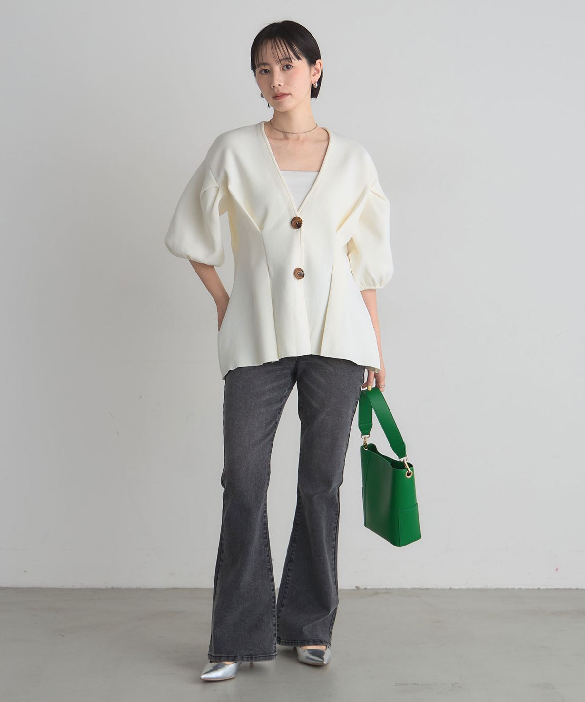 | 商品説明 | : | タックデザインで、自然にスタイルアップが叶うペプラムニット。 ウエスト部分に切り替えを施し、メリハリのあるシルエットを演出するペプラムニット。 腰まわりをさりげなくカバーしつつ、女性らしいラインを引き立てます。 ニット素材ならではの柔らかな着心地で、デイリーにも取り入れやすいのが魅力。 パンツにもスカートにも好相性で、一枚でコーディネートが決まる着映えトップスです。 |