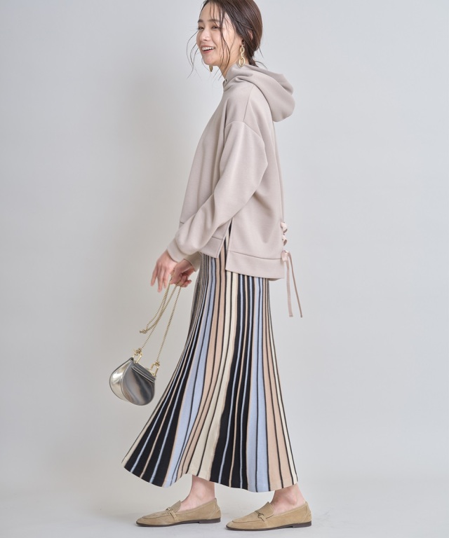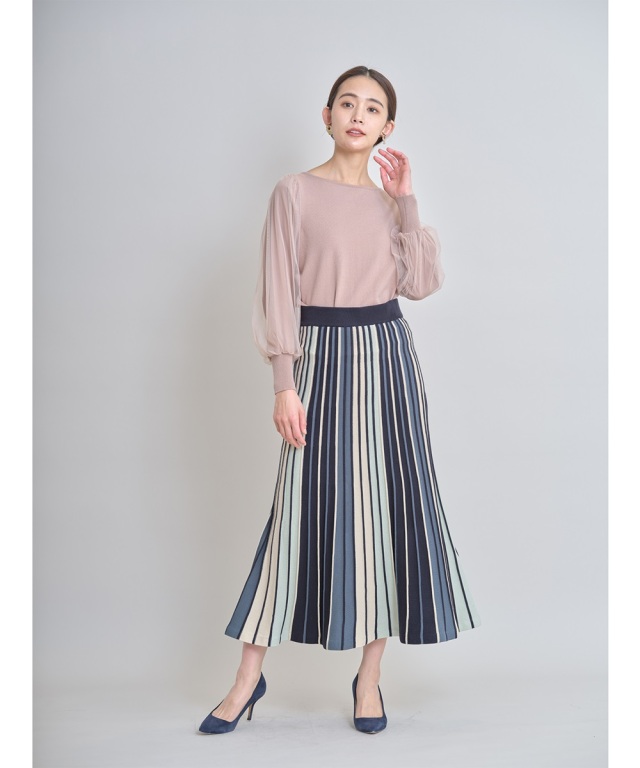 | 商品説明 | : | 印象的なマルチカラーが美人スタイルをつくる配色ニットスカート |