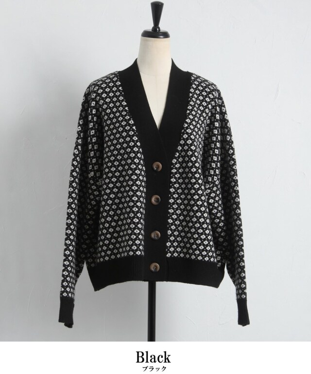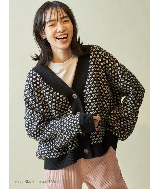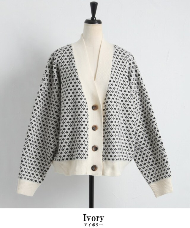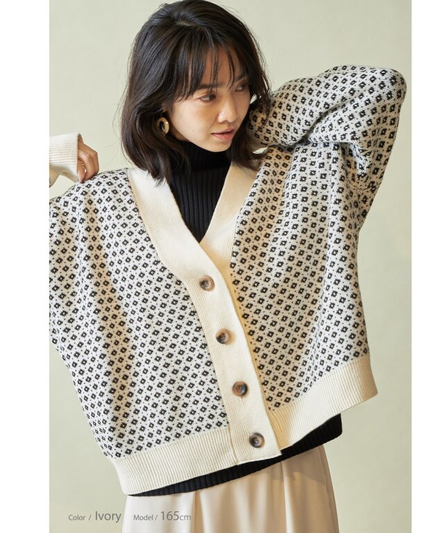 | 商品説明 | : | 大人可愛いゆったり感。秋冬ムード高まるジャガードVネックカーデ |