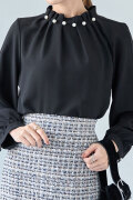 | 商品説明 | : | 襟元パールで上品さ引き立つ。肌当たり軽やかなパールポーラブラウス |