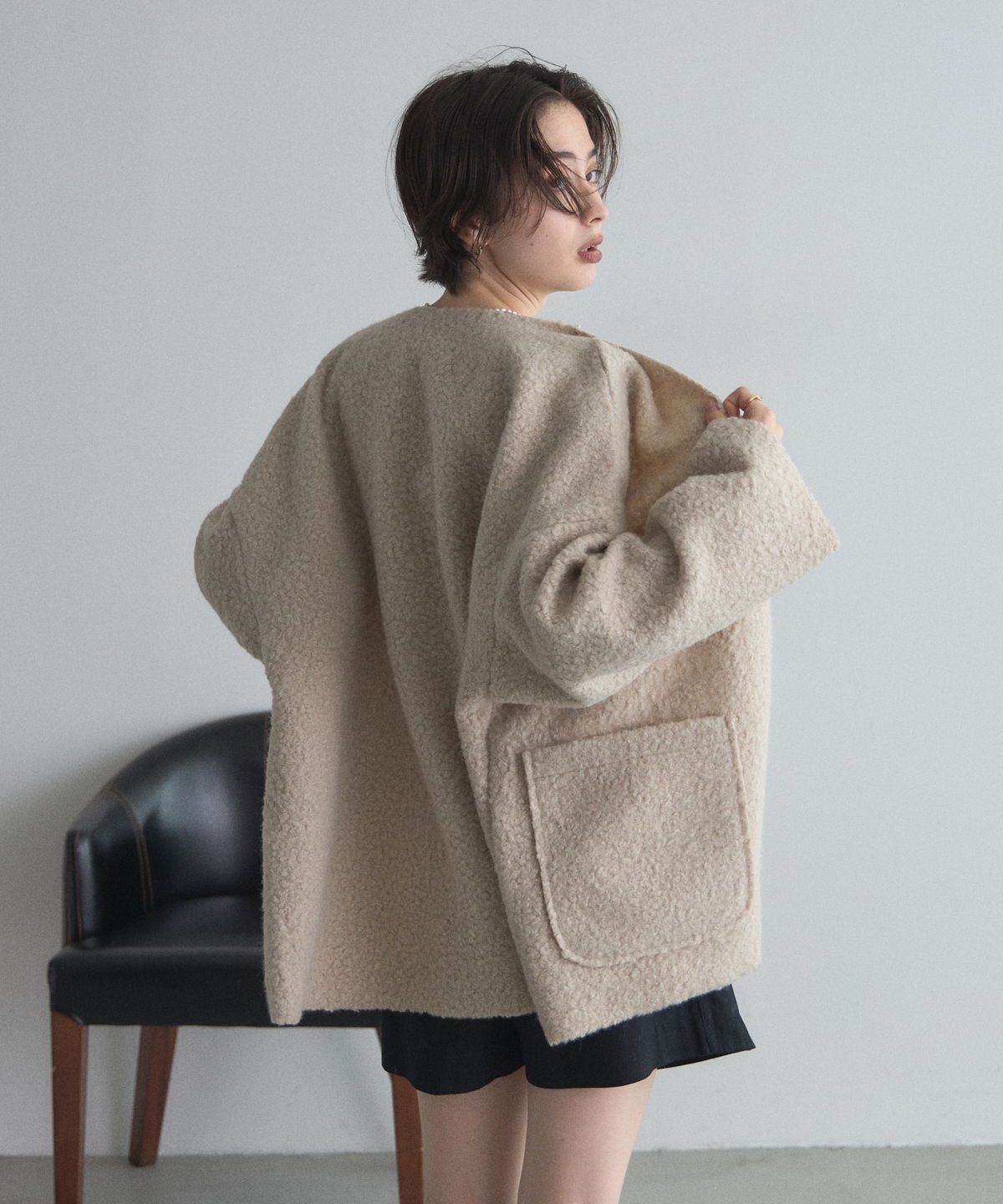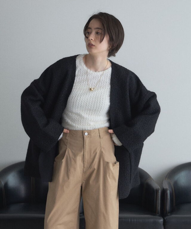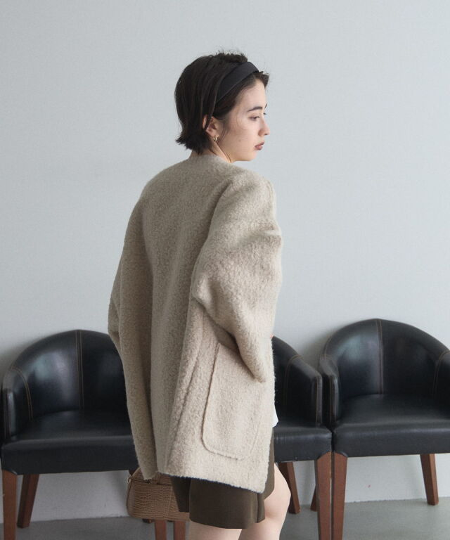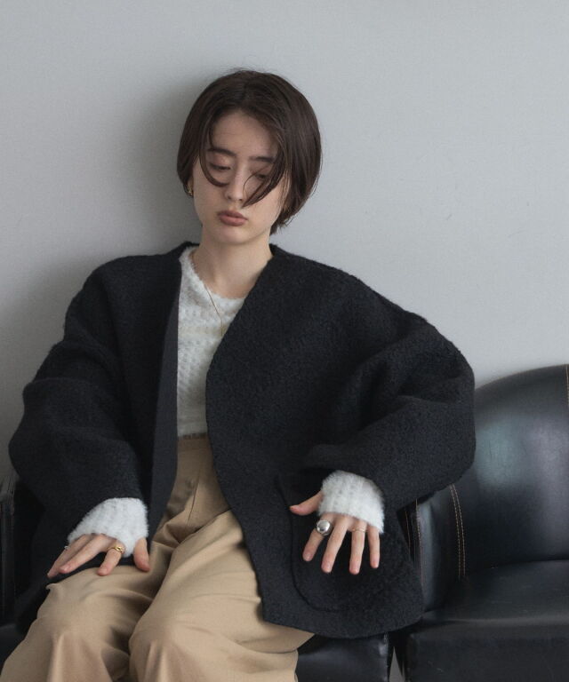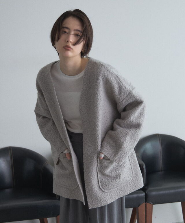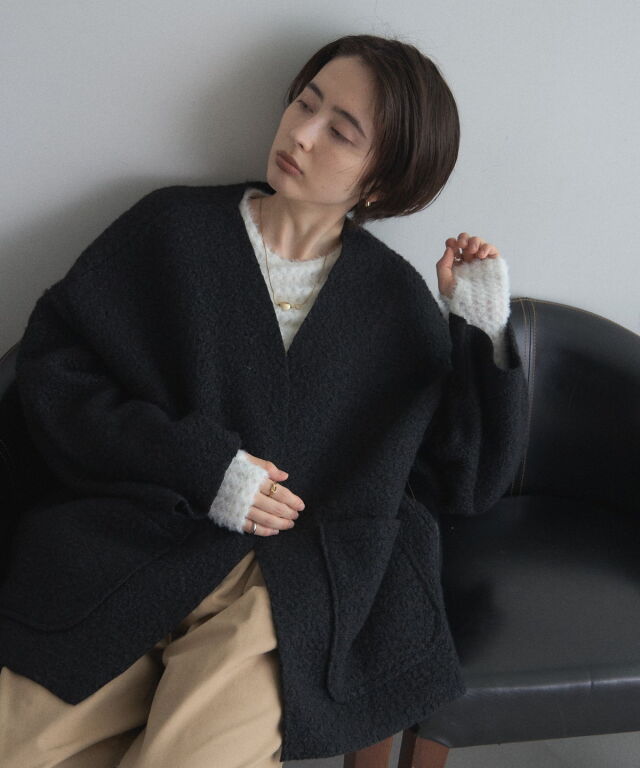 軽く羽織れておしゃれ見え◎控えめもこもこ素材のコスパ抜群アウター ウールライクな素材が特徴的なガウンジャケット。 控えめなもこもこ感で上品な印象にしました。 大きなパッチポケットでトレンド感も機能性も◎ ゆとりを持たせたオーバーサイズで大人の抜け感コーデに仕上げてくれます。 軽やかな素材とボタンレスデザインで、さっと気軽に羽織っていただけます。 |