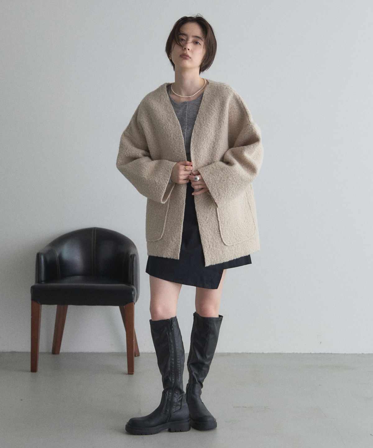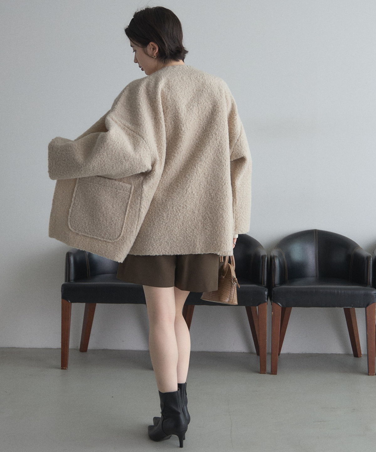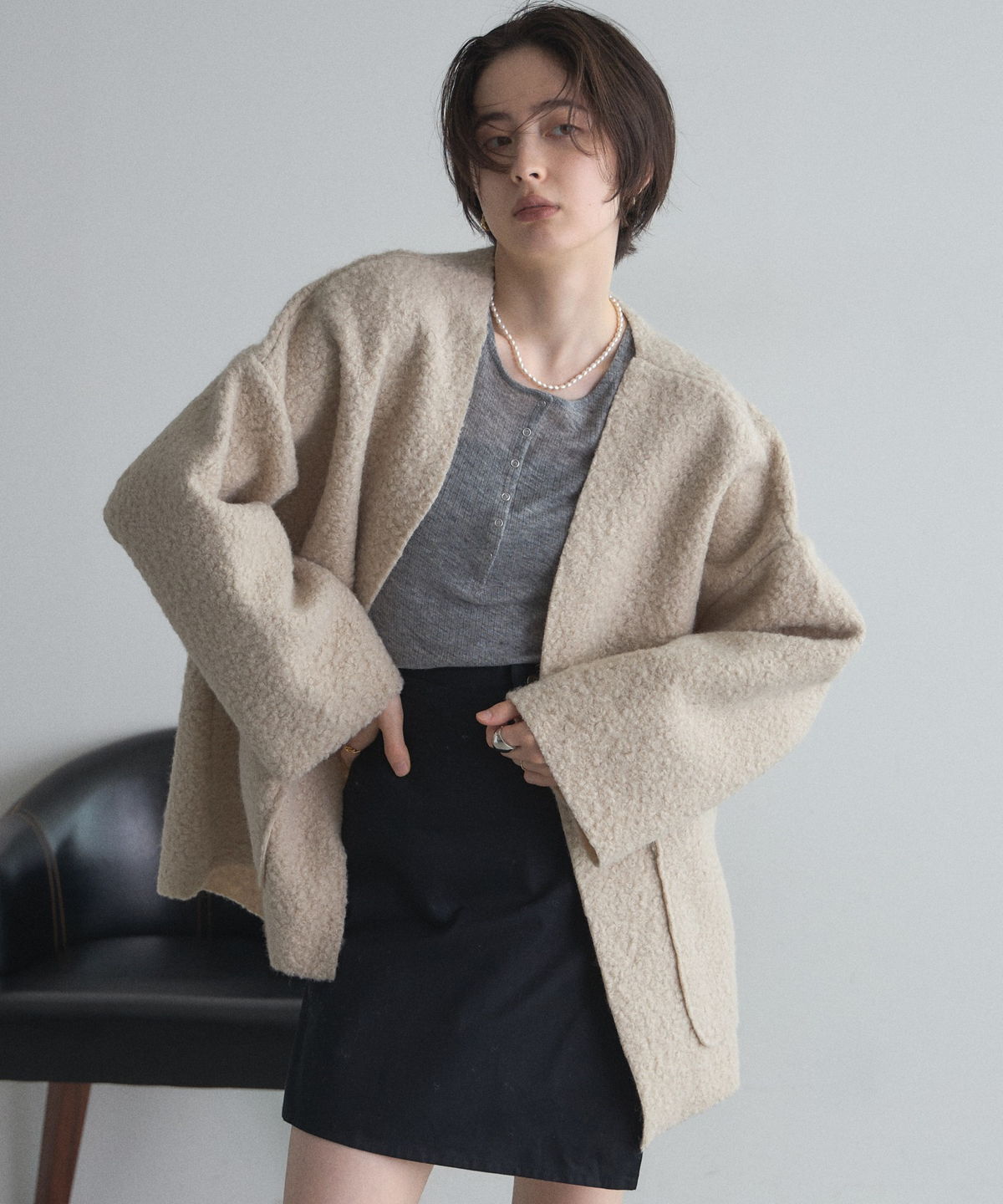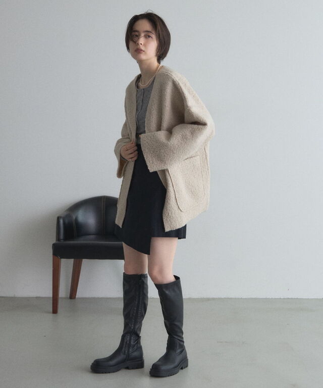 軽く羽織れておしゃれ見え◎控えめもこもこ素材のコスパ抜群アウター ウールライクな素材が特徴的なガウンジャケット。 控えめなもこもこ感で上品な印象にしました。 大きなパッチポケットでトレンド感も機能性も◎ ゆとりを持たせたオーバーサイズで大人の抜け感コーデに仕上げてくれます。 軽やかな素材とボタンレスデザインで、さっと気軽に羽織っていただけます。 |