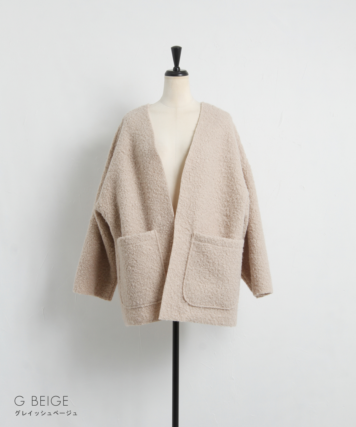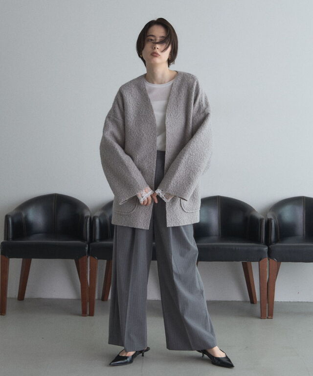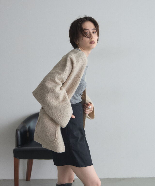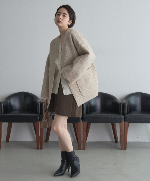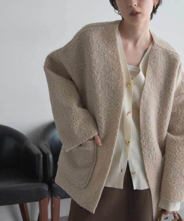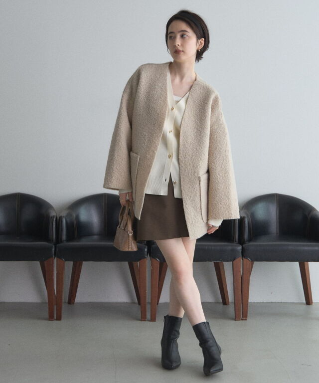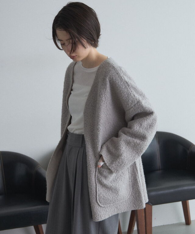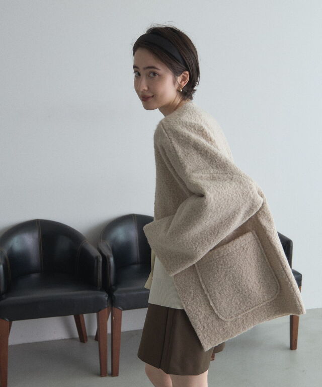 | 商品説明 | ≪ Attention:販売日、在庫状況はWEBと店舗と異なります。予めご了承くださいませ。≫ 軽く羽織れておしゃれ見え◎控えめもこもこ素材のコスパ抜群アウター ウールライクな素材が特徴的なガウンジャケット。 控えめなもこもこ感で上品な印象にしました。 大きなパッチポケットでトレンド感も機能性も◎ ゆとりを持たせたオーバーサイズで大人の抜け感コーデに仕上げてくれます。 軽やかな素材とボタンレスデザインで、さっと気軽に羽織っていただけます。 |