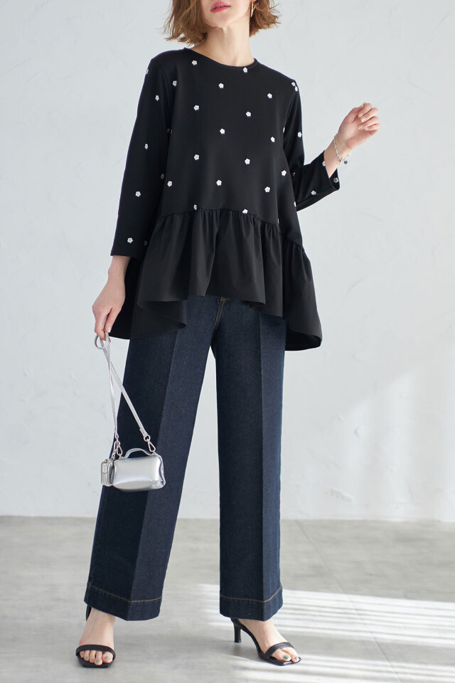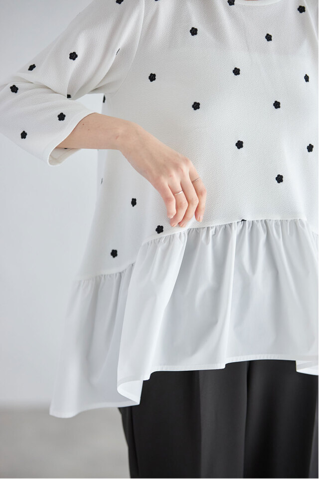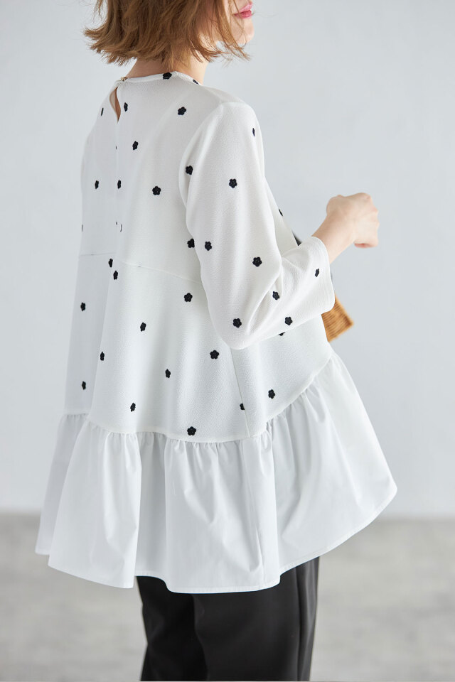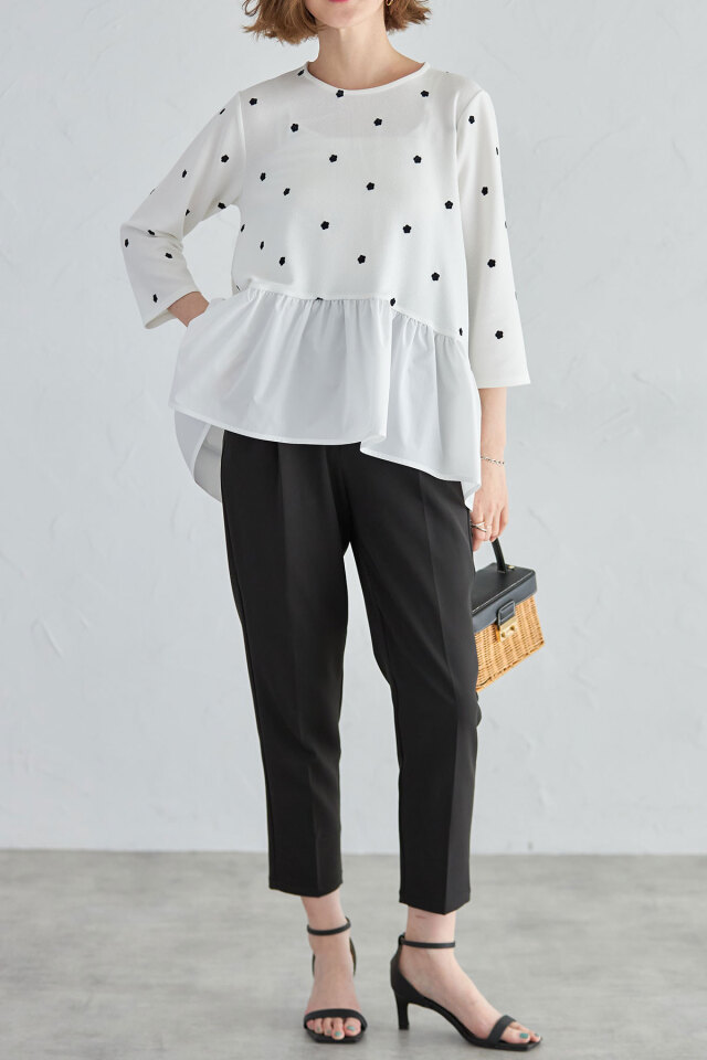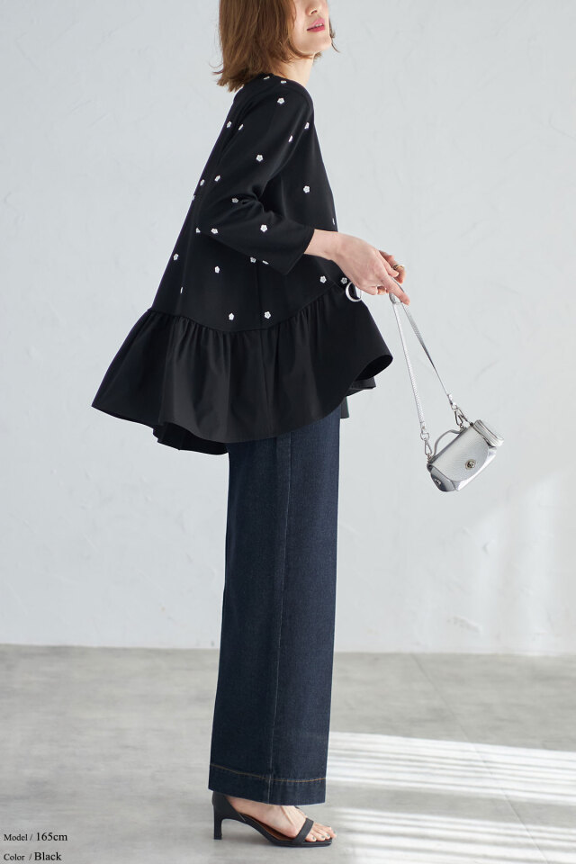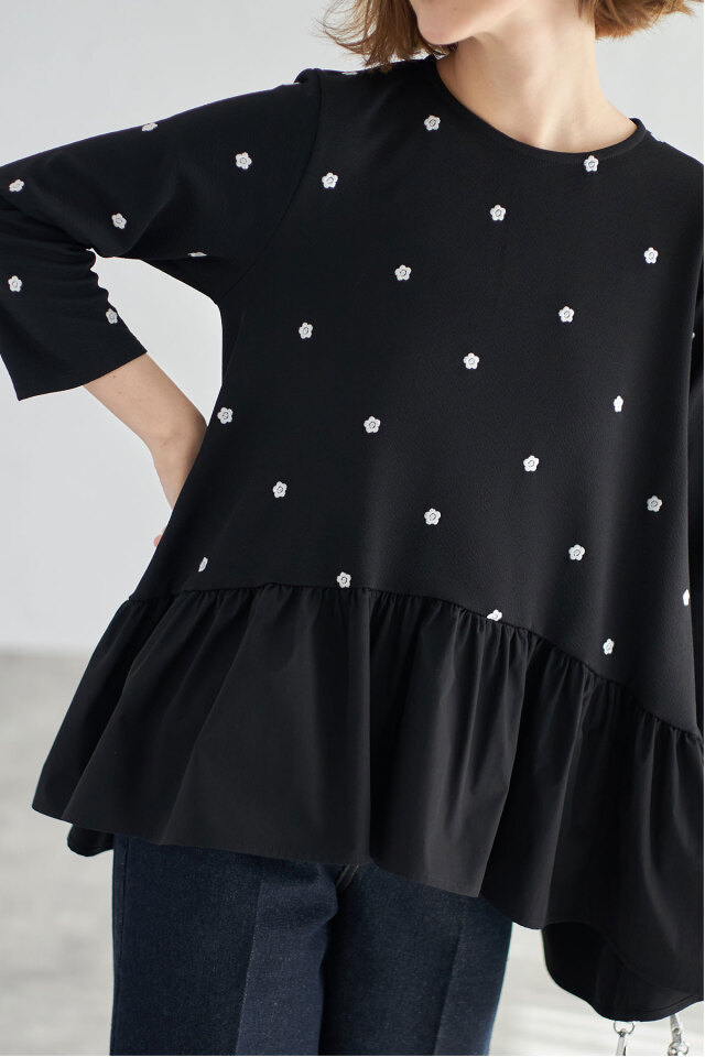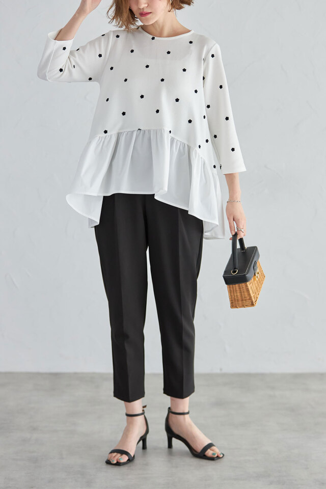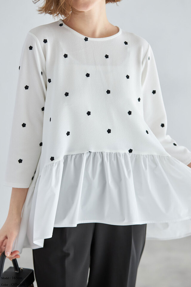 ししゅう糸/ポリエステル100% 別布/ポリエステル100% (中国製・伸縮性本体のみあり・透け感なし・裏地なし) |