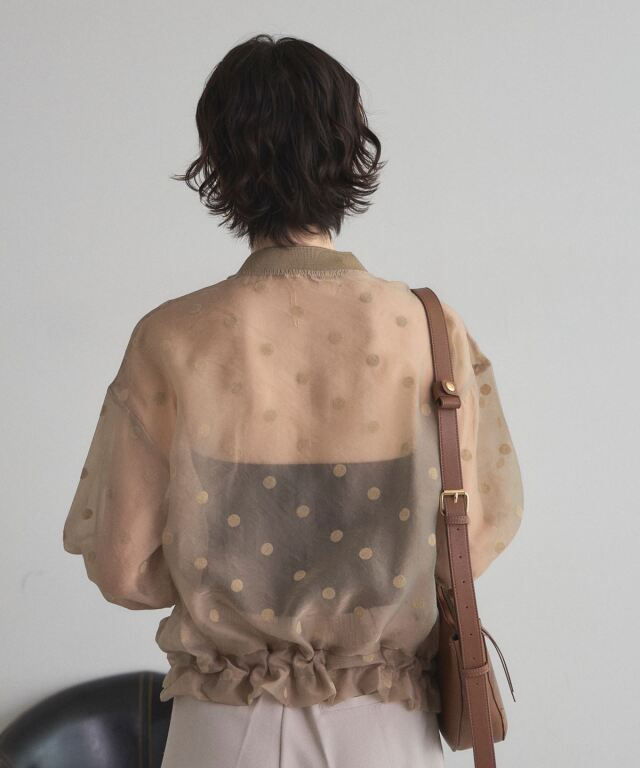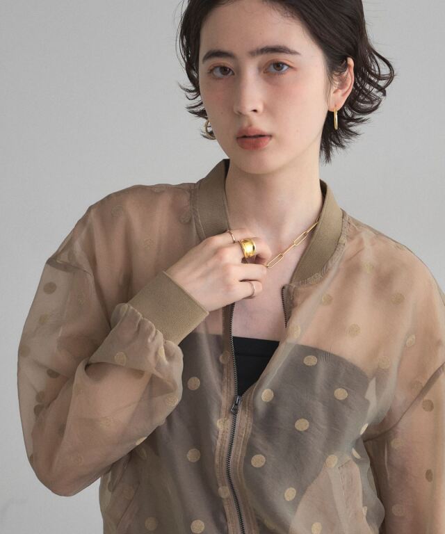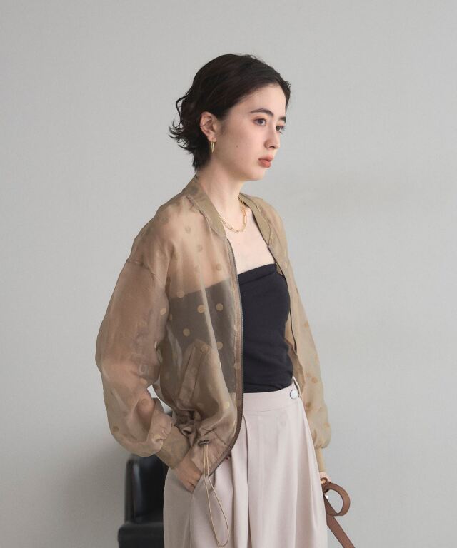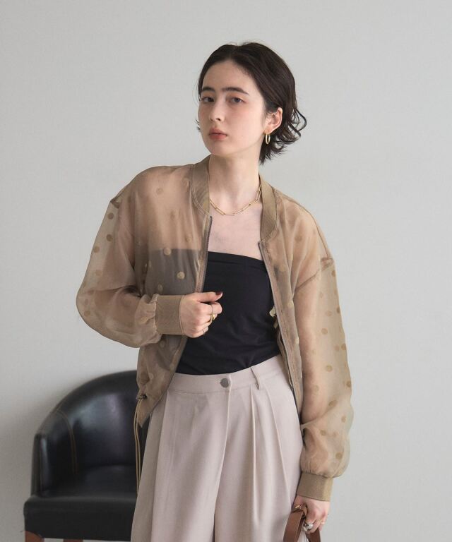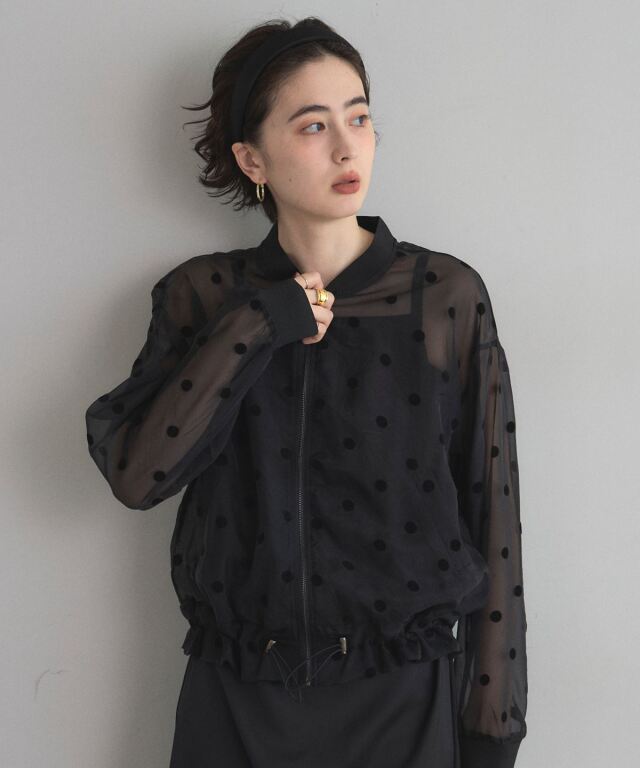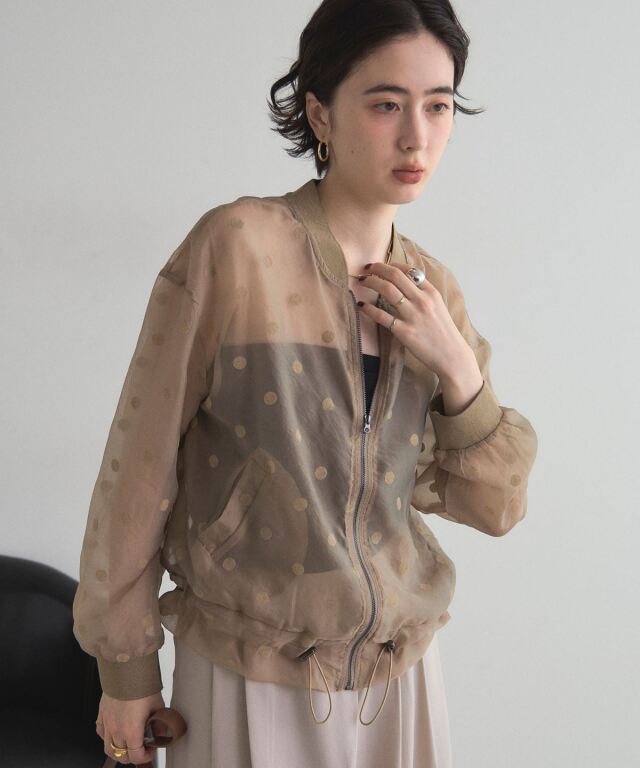 | 商品説明 | ≪ Attention:販売日、在庫状況はWEBと店舗と異なります。予めご了承くださいませ。≫ 軽い素材感で様々なシーンの羽織にぴったり!シアードットブルゾン シアー素材で軽く羽織れるから、肌寒い日や冷房対策にも使えるシアードットブルゾン。 ドットデザインがあることで、シンプルな羽織りとは差をつける、1枚で洒落感も作れるアイテムです◎ ノースリーブアイテムの羽織りもよし、インナーを入れてトップスのように着ても可愛い! |