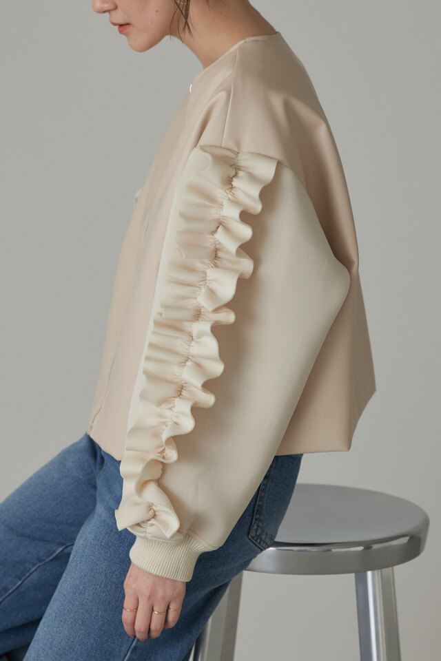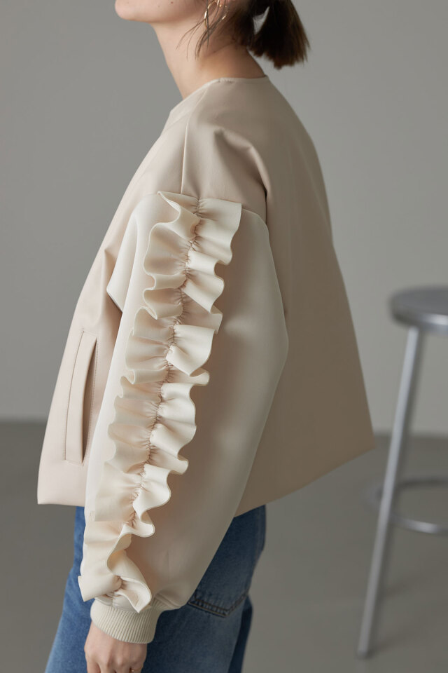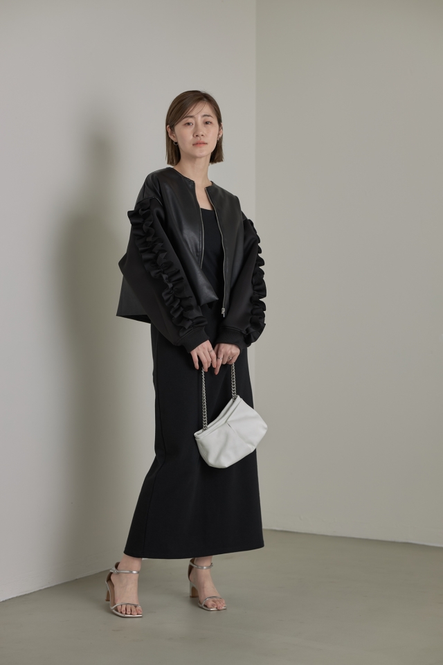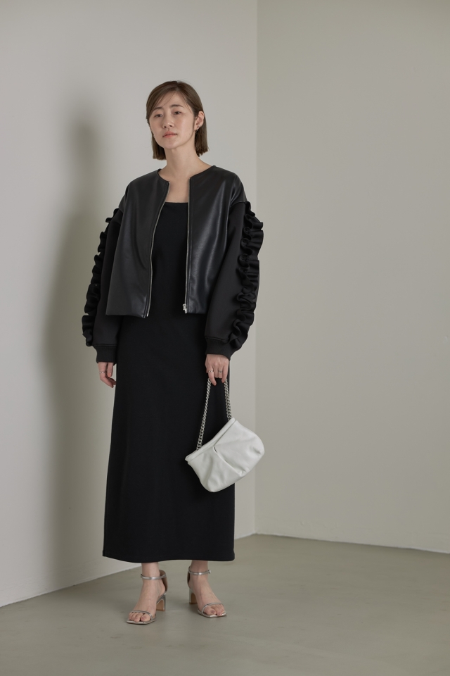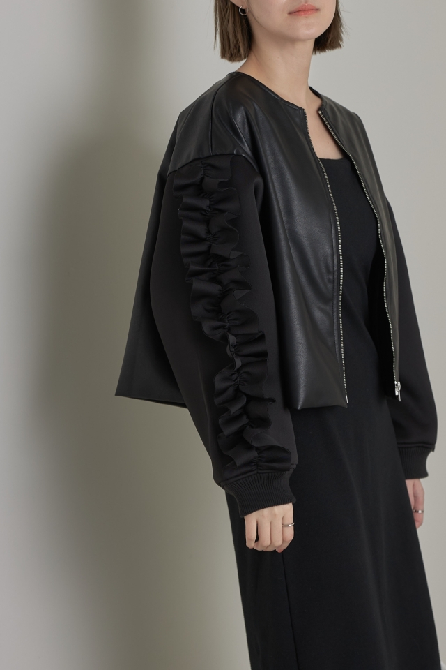 | 素材 | : | 本体/合成皮革 袖/ポリエステル97% ポリウレタン3% 裏地/ポリエステル100% リブ/ポリエステル98% ポリウレタン2% (中国製・伸縮性なし・透け感あり・裏地なし) |