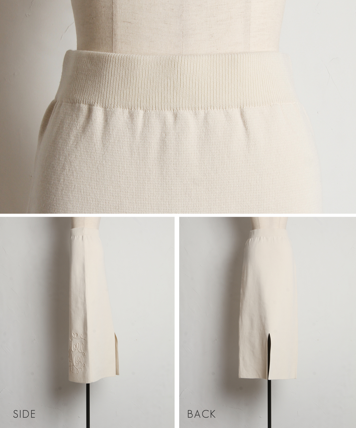 | 商品説明 | : | ボディラインに綺麗に見せてくれるニットスカート ▼POINT ・立体的なコード刺繍が映えるニットタイトスカート ・ウエスト部分がゴム仕様、着脱も簡単なリラックスした履き心地 ・同素材、同デザインのニットカーディガンとのセットアップの着用もお洒落でおすすめ ・チクチクが気になりにくい素材で伸縮性に富んだポリエステル100%を活用 |