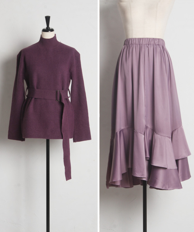 | 素材 | トップス/アクリル48% ポリエステル30% ナイロン22% スカート/ポリエステル100% (中国製・ニットのみ伸縮性あり・透け感なし・裏地なし) |