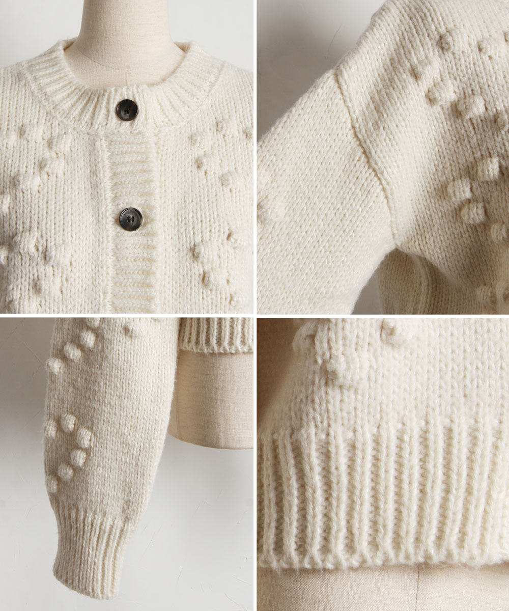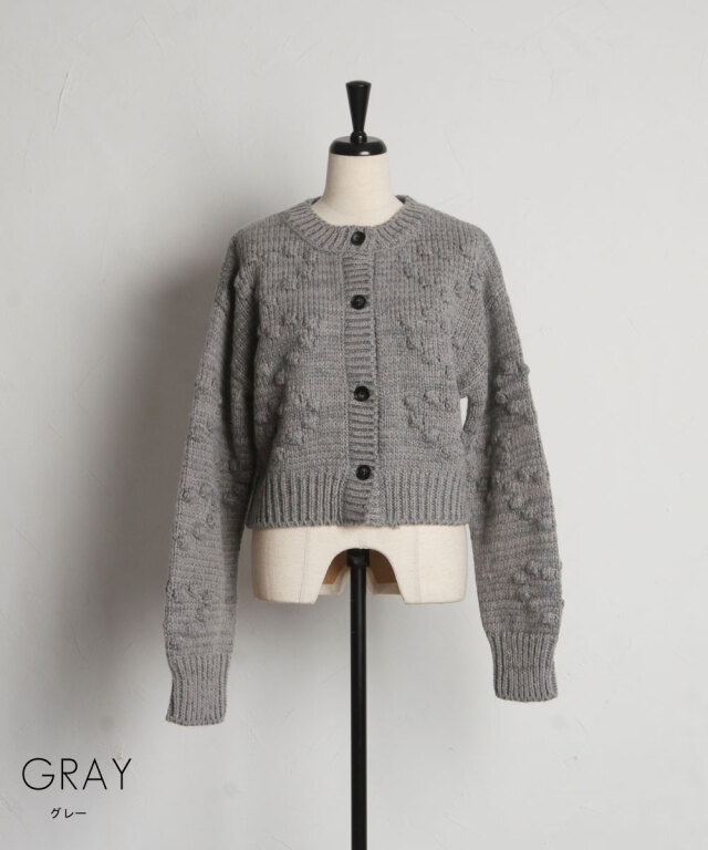 | 商品説明 | : | 1枚で主役級アイテム!!!!!! ポコポコデザインが可愛らしい トレンドのハートモチーフカーディガン ▼POINT ・立体的な特徴のある編み柄のニットカーディガン ・コンパクトなシルエットでも着映えする1枚 ・お袖、バックにも施したハートの編み柄がとってもキュート ・スカート、デニム、カーディガンどんなボトムスともマッチするアイテム |